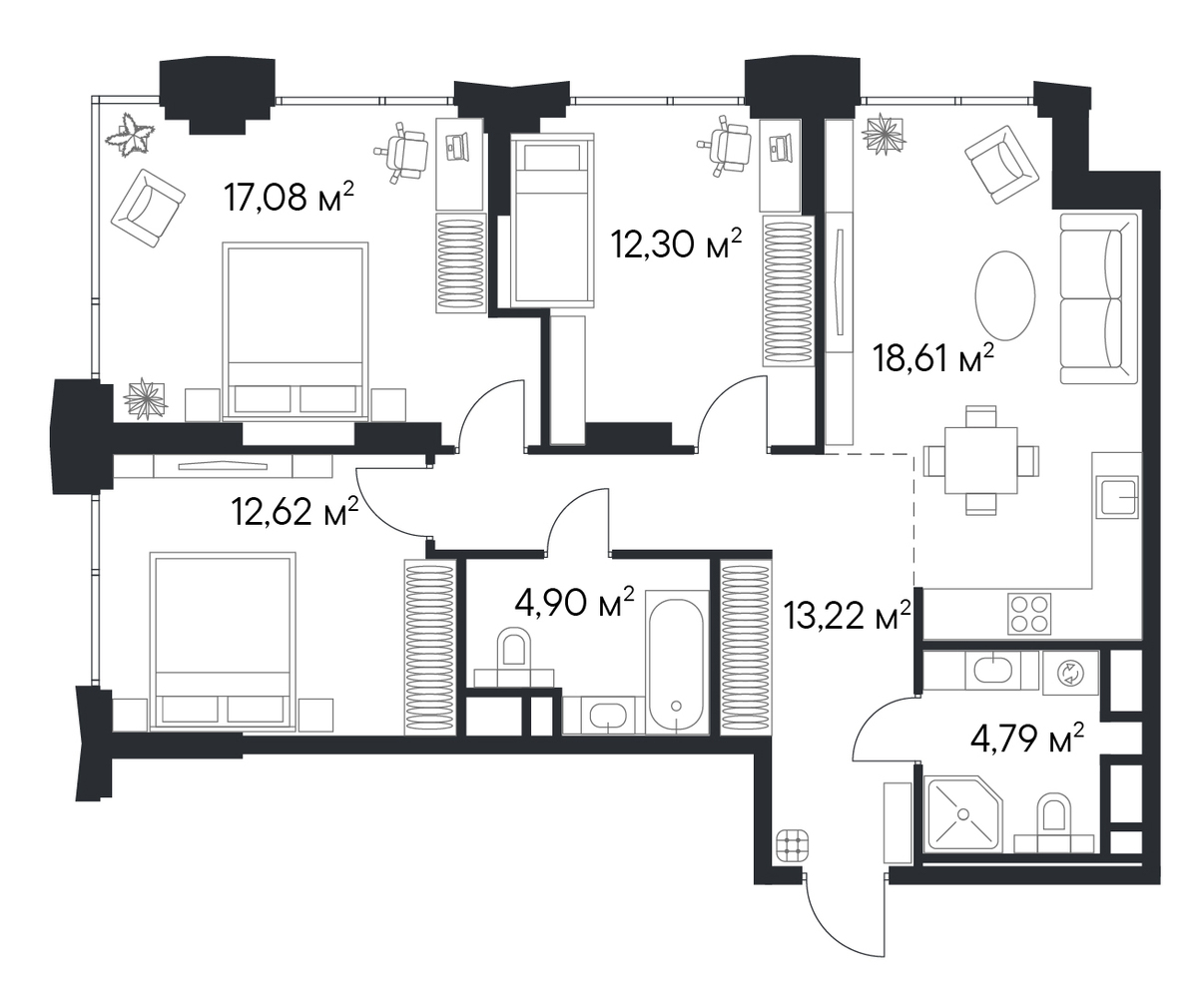 3 комнатная квартира