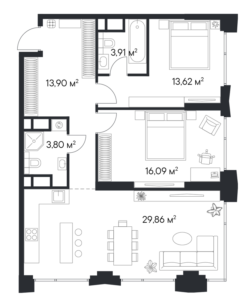2 комнатная квартира