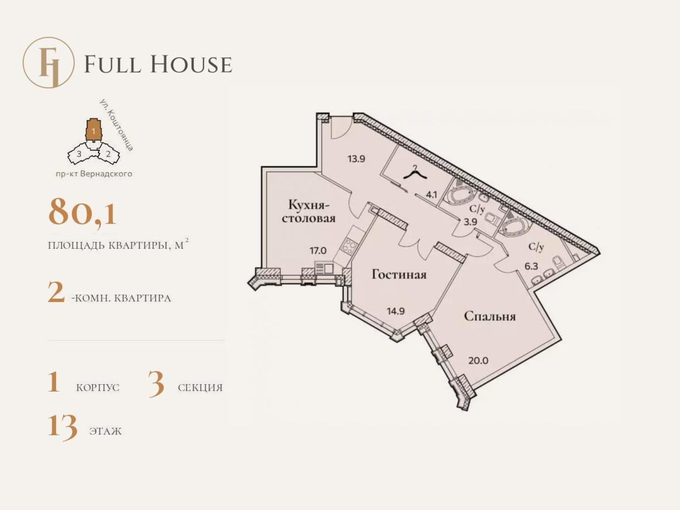 Продается 2-комнатная квартира в ЖК Full House на 13 этаже. Общая площадь квартиры составляет 81,5 кв.м. Квартира без отделки. Жилой комплекс сдан! Жилой комплекс Full House — это идеальное сочетание роскошной инфраструктуры, совершенства инженерных систем и привилегий клубного дома со своей неповторимой камерной атмосферой. Воплощение архитектурной мечты Монументальная классика элегантных линий клубного дома Full House органично вписалась в старомосковскую архитектуру Юго-Западного района — одного из самых востребованных районов столицы. У архитекторов проекта получилось изящно переплести элементы строгого ампира и смелого ар-деко, а фасады из натурального камня добавляют зданию нотки аристократичности. А бонусом к архитектурному совершенству идет возможность построить собственный идеальный мир в своей квартире — они продаются без отделки, со свободной планировкой и возможностью соединить несколько квартир в одно большое пространство. Только для своих Клубная концепция Full House гарантирует отсутствие случайных людей в закрытом интеллигентном коммьюнити и служит залогом абсолютной приватности и безопасности. Закрытая и охраняемая территория жилого комплекса оборудована надежной системой видеонаблюдения, поэтому можно не переживать за детей, играющих на детских площадках. Жемчужина клубного дома — приватный парк, который спрятался от глаз посторонних на стилобатной кровле комплекса. Это роскошный вечнозеленый оазис с естественным природным ландшафтом, спортивными площадками и аллеями для вечерних променадов и утренних пробежек. Жизнь класса Deluxe Full House можно назвать эталоном бытового комфорта. Кроме трехметровых потолков и витражного остекленения в каждой квартире, вас ждет совершенство инженерных систем во всем здании, высший класс энергоэффективности комплекса и комфортабельное лобби с авторским дизайном. Кстати, вашим домашним питомцам лобби тоже понравится — для них оборудована лапомойка, чтобы можно было смыть грязь после прогулки. На первых этажах клубного дома разместились магазины, салоны красоты и другие необходимые службы и сервисы, поэтому при желании можно жить, не покидая территорию комплекса. Но для этого нет причин - Full House окружен прекрасными парками, зелеными зонами и архитектурными памятниками прошлых лет. В этом районе сохранилась атмосфера старой Москвы, которая так нравится туристам и гостям города и вдохновляет на неспешные прогулки старожилов столицы. Позвоните сегодня в офис продаж, и мы с удовольствием пригласим вас в гости. Менеджер подробно расскажет о преимуществах жилого комплекса за чашкой ароматного кофе.