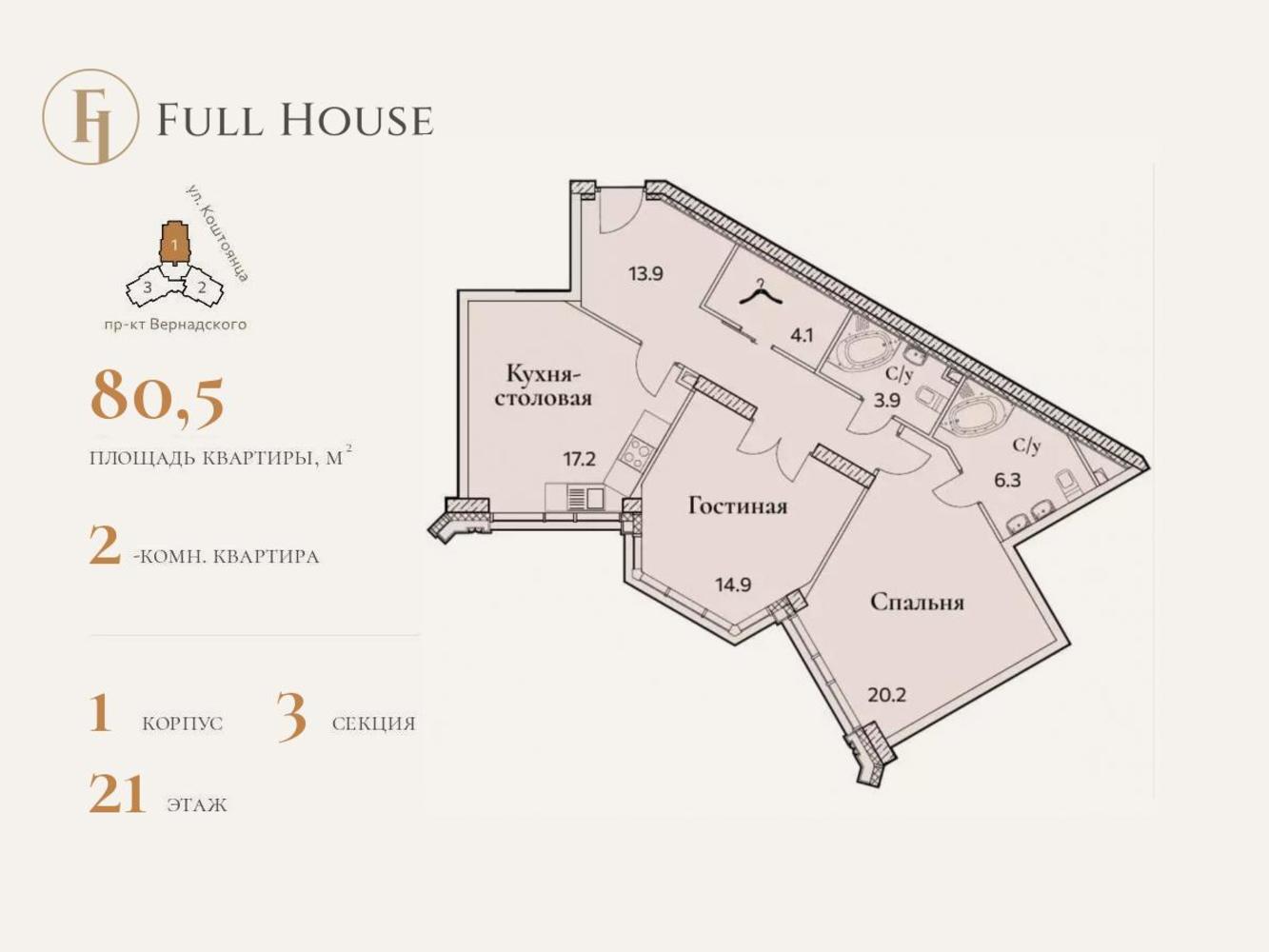 Продается 2-комнатная квартира в ЖК Full House на 21 этаже. Общая площадь квартиры составляет 81,8 кв.м. Квартира без отделки. Жилой комплекс сдан! Жилой комплекс Full House — это идеальное сочетание роскошной инфраструктуры, совершенства инженерных систем и привилегий клубного дома со своей неповторимой камерной атмосферой. Воплощение архитектурной мечты Монументальная классика элегантных линий клубного дома Full House органично вписалась в старомосковскую архитектуру Юго-Западного района — одного из самых востребованных районов столицы. У архитекторов проекта получилось изящно переплести элементы строгого ампира и смелого ар-деко, а фасады из натурального камня добавляют зданию нотки аристократичности. А бонусом к архитектурному совершенству идет возможность построить собственный идеальный мир в своей квартире — они продаются без отделки, со свободной планировкой и возможностью соединить несколько квартир в одно большое пространство. Только для своих Клубная концепция Full House гарантирует отсутствие случайных людей в закрытом интеллигентном коммьюнити и служит залогом абсолютной приватности и безопасности. Закрытая и охраняемая территория жилого комплекса оборудована надежной системой видеонаблюдения, поэтому можно не переживать за детей, играющих на детских площадках. Жемчужина клубного дома — приватный парк, который спрятался от глаз посторонних на стилобатной кровле комплекса. Это роскошный вечнозеленый оазис с естественным природным ландшафтом, спортивными площадками и аллеями для вечерних променадов и утренних пробежек. Жизнь класса Deluxe Full House можно назвать эталоном бытового комфорта. Кроме трехметровых потолков и витражного остекленения в каждой квартире, вас ждет совершенство инженерных систем во всем здании, высший класс энергоэффективности комплекса и комфортабельное лобби с авторским дизайном. Кстати, вашим домашним питомцам лобби тоже понравится — для них оборудована лапомойка, чтобы можно было смыть грязь после прогулки. На первых этажах клубного дома разместились магазины, салоны красоты и другие необходимые службы и сервисы, поэтому при желании можно жить, не покидая территорию комплекса. Но для этого нет причин - Full House окружен прекрасными парками, зелеными зонами и архитектурными памятниками прошлых лет. В этом районе сохранилась атмосфера старой Москвы, которая так нравится туристам и гостям города и вдохновляет на неспешные прогулки старожилов столицы. Позвоните сегодня в офис продаж, и мы с удовольствием пригласим вас в гости. Менеджер подробно расскажет о преимуществах жилого комплекса за чашкой ароматного кофе.