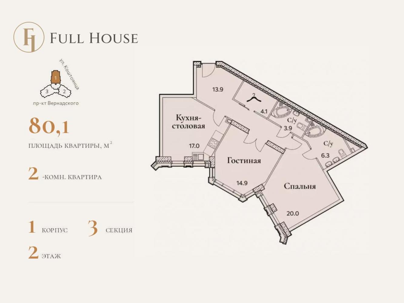 Продается 2-комнатная квартира в ЖК Full House на 2 этаже. Общая площадь квартиры составляет 82,6 кв.м. Квартира без отделки. Жилой комплекс сдан! Жилой комплекс Full House — это идеальное сочетание роскошной инфраструктуры, совершенства инженерных систем и привилегий клубного дома со своей неповторимой камерной атмосферой. Воплощение архитектурной мечты Монументальная классика элегантных линий клубного дома Full House органично вписалась в старомосковскую архитектуру Юго-Западного района — одного из самых востребованных районов столицы. У архитекторов проекта получилось изящно переплести элементы строгого ампира и смелого ар-деко, а фасады из натурального камня добавляют зданию нотки аристократичности. А бонусом к архитектурному совершенству идет возможность построить собственный идеальный мир в своей квартире — они продаются без отделки, со свободной планировкой и возможностью соединить несколько квартир в одно большое пространство. Только для своих Клубная концепция Full House гарантирует отсутствие случайных людей в закрытом интеллигентном коммьюнити и служит залогом абсолютной приватности и безопасности. Закрытая и охраняемая территория жилого комплекса оборудована надежной системой видеонаблюдения, поэтому можно не переживать за детей, играющих на детских площадках. Жемчужина клубного дома — приватный парк, который спрятался от глаз посторонних на стилобатной кровле комплекса. Это роскошный вечнозеленый оазис с естественным природным ландшафтом, спортивными площадками и аллеями для вечерних променадов и утренних пробежек. Жизнь класса Deluxe Full House можно назвать эталоном бытового комфорта. Кроме трехметровых потолков и витражного остекленения в каждой квартире, вас ждет совершенство инженерных систем во всем здании, высший класс энергоэффективности комплекса и комфортабельное лобби с авторским дизайном. Кстати, вашим домашним питомцам лобби тоже понравится — для них оборудована лапомойка, чтобы можно было смыть грязь после прогулки. На первых этажах клубного дома разместились магазины, салоны красоты и другие необходимые службы и сервисы, поэтому при желании можно жить, не покидая территорию комплекса. Но для этого нет причин - Full House окружен прекрасными парками, зелеными зонами и архитектурными памятниками прошлых лет. В этом районе сохранилась атмосфера старой Москвы, которая так нравится туристам и гостям города и вдохновляет на неспешные прогулки старожилов столицы. Позвоните сегодня в офис продаж, и мы с удовольствием пригласим вас в гости. Менеджер подробно расскажет о преимуществах жилого комплекса за чашкой ароматного кофе.