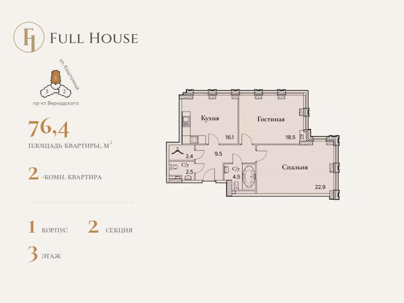 Продается 2-комнатная квартира в ЖК Full House на 3 этаже. Общая площадь квартиры составляет 76,8 кв.м. Квартира без отделки. Дом уже сдан! Жилой комплекс Full House — это идеальное сочетание роскошной инфраструктуры, совершенства инженерных систем и привилегий клубного дома со своей неповторимой камерной атмосферой. Воплощение архитектурной мечты Монументальная классика элегантных линий клубного дома Full House органично вписалась в старомосковскую архитектуру Юго-Западного района — одного из самых востребованных районов столицы. У архитекторов проекта получилось изящно переплести элементы строгого ампира и смелого ар-деко, а фасады из натурального камня добавляют зданию нотки аристократичности. А бонусом к архитектурному совершенству идет возможность построить собственный идеальный мир в своей квартире — они продаются без отделки, со свободной планировкой и возможностью соединить несколько квартир в одно большое пространство. Только для своих Клубная концепция Full House гарантирует отсутствие случайных людей в закрытом интеллигентном коммьюнити и служит залогом абсолютной приватности и безопасности. Закрытая и охраняемая территория жилого комплекса оборудована надежной системой видеонаблюдения, поэтому можно не переживать за детей, играющих на детских площадках. Жемчужина клубного дома — приватный парк, который спрятался от глаз посторонних на стилобатной кровле комплекса. Это роскошный вечнозеленый оазис с естественным природным ландшафтом, спортивными площадками и аллеями для вечерних променадов и утренних пробежек. Жизнь класса Deluxe Full House можно назвать эталоном бытового комфорта. Кроме трехметровых потолков и витражного остекленения в каждой квартире, вас ждет совершенство инженерных систем во всем здании, высший класс энергоэффективности комплекса и комфортабельное лобби с авторским дизайном. Кстати, вашим домашним питомцам лобби тоже понравится — для них оборудована лапомойка, чтобы можно было смыть грязь после прогулки. На первых этажах клубного дома разместились магазины, салоны красоты и другие необходимые службы и сервисы, поэтому при желании можно жить, не покидая территорию комплекса. Но для этого нет причин - Full House окружен прекрасными парками, зелеными зонами и архитектурными памятниками прошлых лет. В этом районе сохранилась атмосфера старой Москвы, которая так нравится туристам и гостям города и вдохновляет на неспешные прогулки старожилов столицы. Позвоните сегодня в офис продаж, и мы с удовольствием пригласим вас в гости. Менеджер подробно расскажет о преимуществах жилого комплекса за чашкой ароматного кофе.