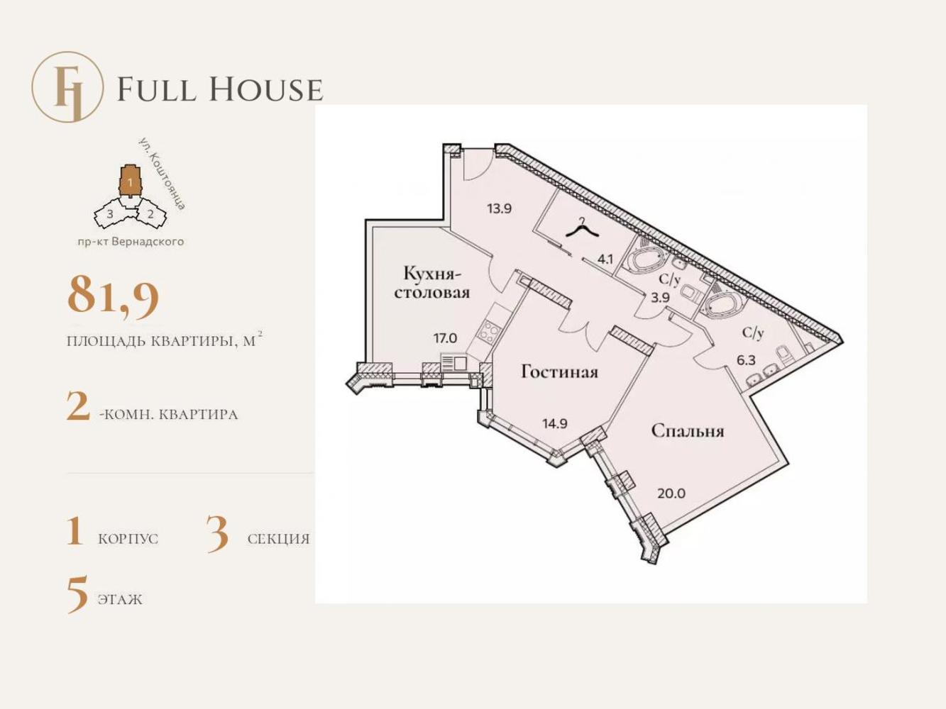 Продается 2-комнатная квартира в ЖК Full House на 5 этаже. Общая площадь квартиры составляет 81,9 кв.м. Квартира без отделки. Жилой комплекс сдан! Жилой комплекс Full House — это идеальное сочетание роскошной инфраструктуры, совершенства инженерных систем и привилегий клубного дома со своей неповторимой камерной атмосферой. Воплощение архитектурной мечты Монументальная классика элегантных линий клубного дома Full House органично вписалась в старомосковскую архитектуру Юго-Западного района — одного из самых востребованных районов столицы. У архитекторов проекта получилось изящно переплести элементы строгого ампира и смелого ар-деко, а фасады из натурального камня добавляют зданию нотки аристократичности. А бонусом к архитектурному совершенству идет возможность построить собственный идеальный мир в своей квартире — они продаются без отделки, со свободной планировкой и возможностью соединить несколько квартир в одно большое пространство. Только для своих Клубная концепция Full House гарантирует отсутствие случайных людей в закрытом интеллигентном коммьюнити и служит залогом абсолютной приватности и безопасности. Закрытая и охраняемая территория жилого комплекса оборудована надежной системой видеонаблюдения, поэтому можно не переживать за детей, играющих на детских площадках. Жемчужина клубного дома — приватный парк, который спрятался от глаз посторонних на стилобатной кровле комплекса. Это роскошный вечнозеленый оазис с естественным природным ландшафтом, спортивными площадками и аллеями для вечерних променадов и утренних пробежек. Жизнь класса Deluxe Full House можно назвать эталоном бытового комфорта. Кроме трехметровых потолков и витражного остекленения в каждой квартире, вас ждет совершенство инженерных систем во всем здании, высший класс энергоэффективности комплекса и комфортабельное лобби с авторским дизайном. Кстати, вашим домашним питомцам лобби тоже понравится — для них оборудована лапомойка, чтобы можно было смыть грязь после прогулки. На первых этажах клубного дома разместились магазины, салоны красоты и другие необходимые службы и сервисы, поэтому при желании можно жить, не покидая территорию комплекса. Но для этого нет причин - Full House окружен прекрасными парками, зелеными зонами и архитектурными памятниками прошлых лет. В этом районе сохранилась атмосфера старой Москвы, которая так нравится туристам и гостям города и вдохновляет на неспешные прогулки старожилов столицы. Позвоните сегодня в офис продаж, и мы с удовольствием пригласим вас в гости. Менеджер подробно расскажет о преимуществах жилого комплекса за чашкой ароматного кофе.