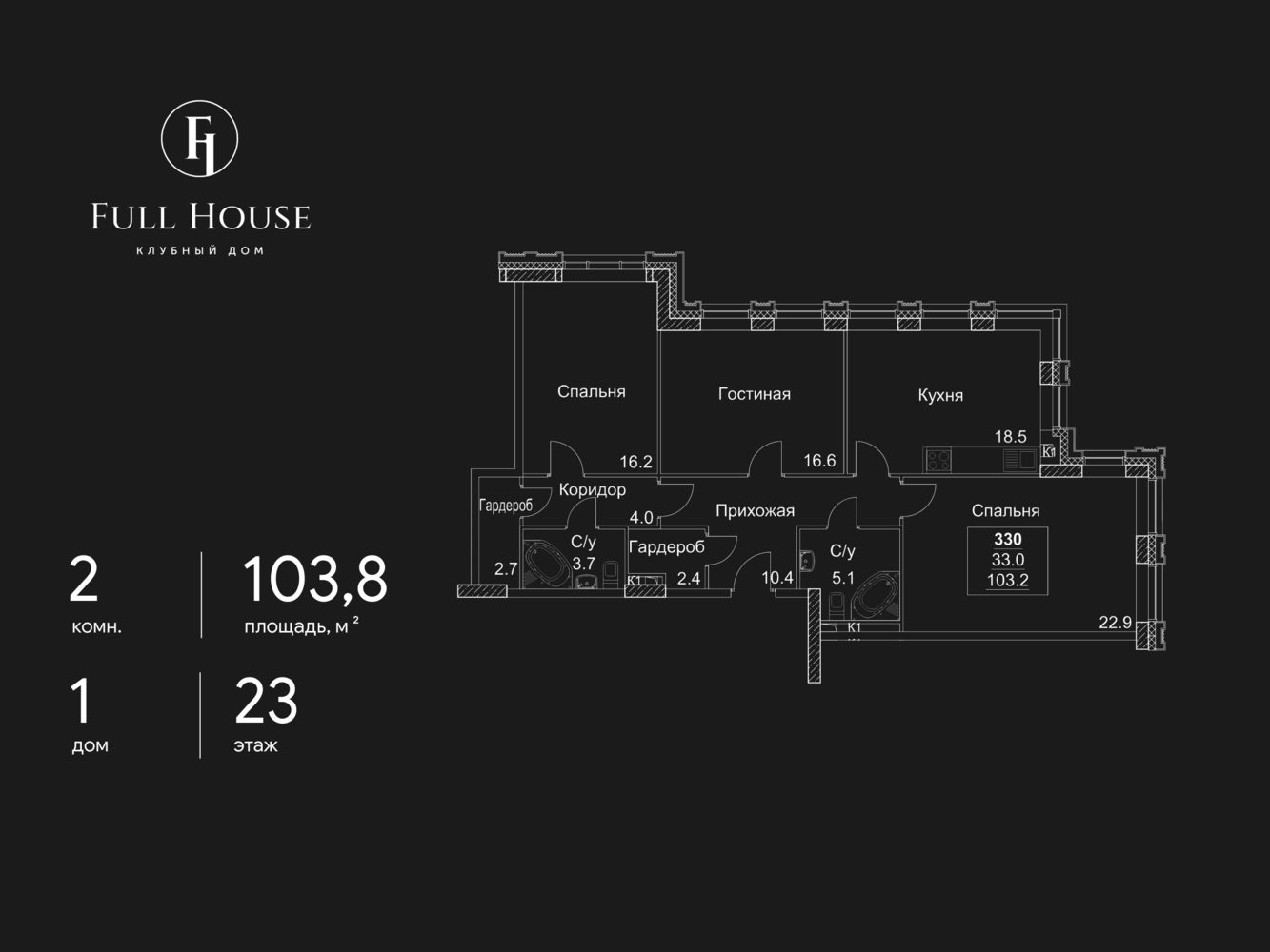 Продается 2-комнатная квартира в ЖК Full House на 23 этаже. Общая площадь квартиры составляет 103,8 кв.м. Квартира без отделки. Жилой комплекс сдан! Жилой комплекс Full House — это идеальное сочетание роскошной инфраструктуры, совершенства инженерных систем и привилегий клубного дома со своей неповторимой камерной атмосферой. Воплощение архитектурной мечты Монументальная классика элегантных линий клубного дома Full House органично вписалась в старомосковскую архитектуру Юго-Западного района — одного из самых востребованных районов столицы. У архитекторов проекта получилось изящно переплести элементы строгого ампира и смелого ар-деко, а фасады из натурального камня добавляют зданию нотки аристократичности. А бонусом к архитектурному совершенству идет возможность построить собственный идеальный мир в своей квартире — они продаются без отделки, со свободной планировкой и возможностью соединить несколько квартир в одно большое пространство. Только для своих Клубная концепция Full House гарантирует отсутствие случайных людей в закрытом интеллигентном коммьюнити и служит залогом абсолютной приватности и безопасности. Закрытая и охраняемая территория жилого комплекса оборудована надежной системой видеонаблюдения, поэтому можно не переживать за детей, играющих на детских площадках. Жемчужина клубного дома — приватный парк, который спрятался от глаз посторонних на стилобатной кровле комплекса. Это роскошный вечнозеленый оазис с естественным природным ландшафтом, спортивными площадками и аллеями для вечерних променадов и утренних пробежек. Жизнь класса Deluxe Full House можно назвать эталоном бытового комфорта. Кроме трехметровых потолков и витражного остекленения в каждой квартире, вас ждет совершенство инженерных систем во всем здании, высший класс энергоэффективности комплекса и комфортабельное лобби с авторским дизайном. Кстати, вашим домашним питомцам лобби тоже понравится — для них оборудована лапомойка, чтобы можно было смыть грязь после прогулки. На первых этажах клубного дома разместились магазины, салоны красоты и другие необходимые службы и сервисы, поэтому при желании можно жить, не покидая территорию комплекса. Но для этого нет причин - Full House окружен прекрасными парками, зелеными зонами и архитектурными памятниками прошлых лет. В этом районе сохранилась атмосфера старой Москвы, которая так нравится туристам и гостям города и вдохновляет на неспешные прогулки старожилов столицы. Позвоните сегодня в офис продаж, и мы с удовольствием пригласим вас в гости. Менеджер подробно расскажет о преимуществах жилого комплекса за чашкой ароматного кофе.