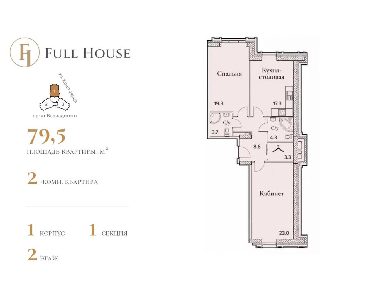 Продается 1-комнатная квартира в ЖК Full House на 2 этаже. Общая площадь квартиры составляет 79,9 кв.м. Квартира без отделки. Жилой комплекс сдан! Жилой комплекс Full House — это идеальное сочетание роскошной инфраструктуры, совершенства инженерных систем и привилегий клубного дома со своей неповторимой камерной атмосферой. Воплощение архитектурной мечты Монументальная классика элегантных линий клубного дома Full House органично вписалась в старомосковскую архитектуру Юго-Западного района — одного из самых востребованных районов столицы. У архитекторов проекта получилось изящно переплести элементы строгого ампира и смелого ар-деко, а фасады из натурального камня добавляют зданию нотки аристократичности. А бонусом к архитектурному совершенству идет возможность построить собственный идеальный мир в своей квартире — они продаются без отделки, со свободной планировкой и возможностью соединить несколько квартир в одно большое пространство. Только для своих Клубная концепция Full House гарантирует отсутствие случайных людей в закрытом интеллигентном коммьюнити и служит залогом абсолютной приватности и безопасности. Закрытая и охраняемая территория жилого комплекса оборудована надежной системой видеонаблюдения, поэтому можно не переживать за детей, играющих на детских площадках. Жемчужина клубного дома — приватный парк, который спрятался от глаз посторонних на стилобатной кровле комплекса. Это роскошный вечнозеленый оазис с естественным природным ландшафтом, спортивными площадками и аллеями для вечерних променадов и утренних пробежек. Жизнь класса Deluxe Full House можно назвать эталоном бытового комфорта. Кроме трехметровых потолков и витражного остекленения в каждой квартире, вас ждет совершенство инженерных систем во всем здании, высший класс энергоэффективности комплекса и комфортабельное лобби с авторским дизайном. Кстати, вашим домашним питомцам лобби тоже понравится — для них оборудована лапомойка, чтобы можно было смыть грязь после прогулки. На первых этажах клубного дома разместились магазины, салоны красоты и другие необходимые службы и сервисы, поэтому при желании можно жить, не покидая территорию комплекса. Но для этого нет причин - Full House окружен прекрасными парками, зелеными зонами и архитектурными памятниками прошлых лет. В этом районе сохранилась атмосфера старой Москвы, которая так нравится туристам и гостям города и вдохновляет на неспешные прогулки старожилов столицы. Позвоните сегодня в офис продаж, и мы с удовольствием пригласим вас в гости. Менеджер подробно расскажет о преимуществах жилого комплекса за чашкой ароматного кофе.