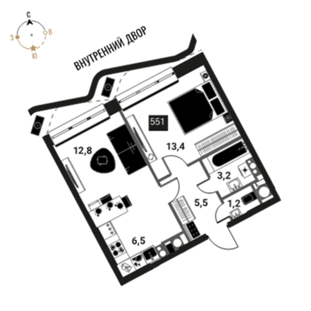 2 комнатная квартира