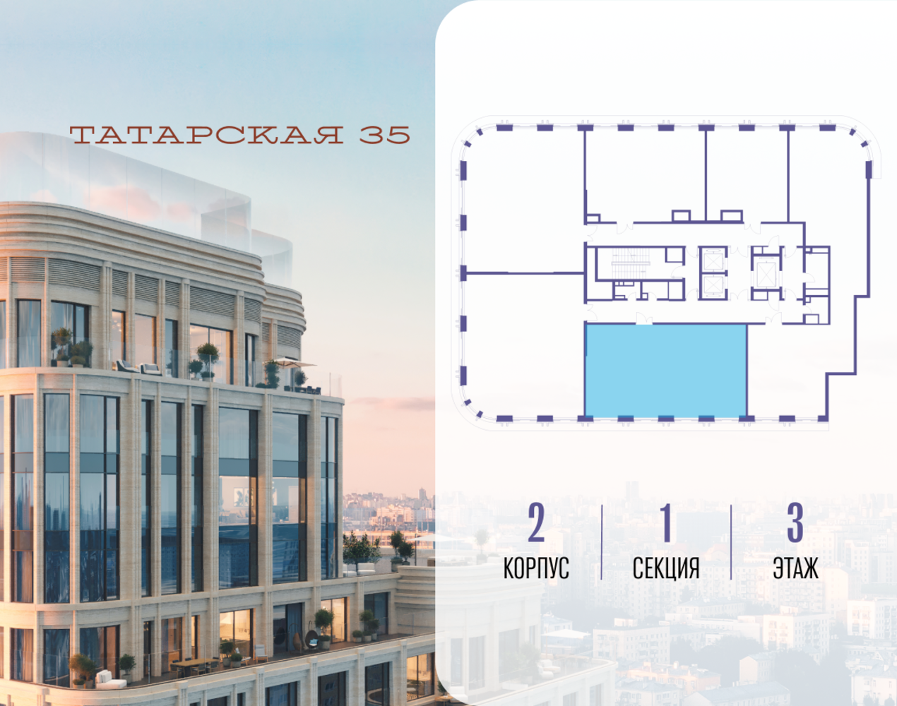 Продается просторная квартира площадью 110.30 м2 в жилом комплексе ТАТАРСКАЯ, 35. Квартира находится в 1 секции корпуса 2. Этаж 3-й из 19. Квартира без чистовой отделки, с просторной кухней 27.00 м2. Жилая площадь ― 42.50 м2. Высота потолка от 3.50. ТАТАРСКАЯ, 35 - новая архитектурная доминанта Замоскворечья, достопримечательность на фотопанорамах исторического центра Москвы. Элитный дом, созданный для тех, кто умеет смотреть далеко вперед, мыслить масштабно и воплощать собственный сценарий жизни. Вдохновляющие прогулки по променаду набережной, в уютных переулках, в парке «Зарядье», в Михайловском саду и Репинском сквере. Наслаждение высоким искусством в Третьяковской галерее, Доме Музыки, театральном музее им. А.А. Бахрушина, театре на Малой Ордынке. За окнами - Кремль, высотка на Котельнической, панорамы Замоскворечья и острова Балчуг, огни Садового кольца. Собственные спорт-румы, детская, репетиторская, бьюти-пространства, деловое пространство с коворкингом, переговорной и сигарной. Собственный трехуровневый фитнесс-центр с бассейном, тренажерным залом, сауной, хаммамом, массажным кабинетом. Площадь двора – 1,8 га, половина территории покрыта деревьями, кустарниками и лужайками. Дом расположен внутри Садового кольца – отсюда в считанные минуты можно добраться до важнейших мест столицы: достопримечательностей и парков, театров и ресторанов, деловых и административных центров. 7 минут до Кремля на автомобиле, 15 минут до Третьяковской галереи и 8 минут до Садового кольца пешком. Планировочные решения и визуализации предварительны, возможны изменения.