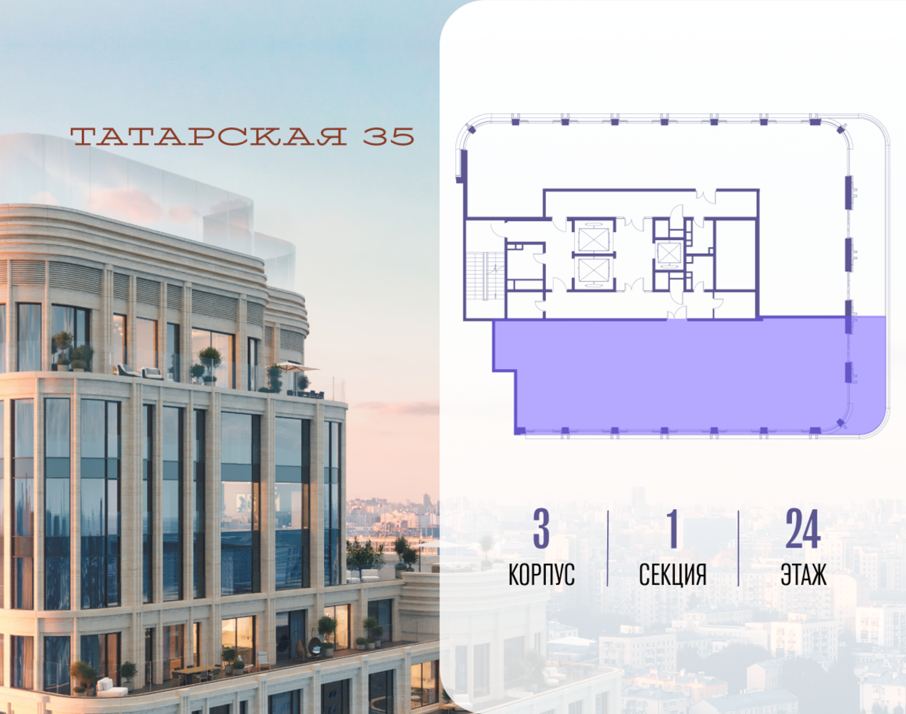 Продается просторная квартира площадью 190.00 м2 в жилом комплексе ТАТАРСКАЯ, 35. Квартира находится в 1 секции корпуса 3. Этаж 24-й из 24. Квартира без чистовой отделки, с просторной кухней 56.30 м2. Жилая площадь ― 77.40 м2. Высота потолка от 3.50. ТАТАРСКАЯ, 35 - новая архитектурная доминанта Замоскворечья, достопримечательность на фотопанорамах исторического центра Москвы. Элитный дом, созданный для тех, кто умеет смотреть далеко вперед, мыслить масштабно и воплощать собственный сценарий жизни. Вдохновляющие прогулки по променаду набережной, в уютных переулках, в парке «Зарядье», в Михайловском саду и Репинском сквере. Наслаждение высоким искусством в Третьяковской галерее, Доме Музыки, театральном музее им. А.А. Бахрушина, театре на Малой Ордынке. За окнами - Кремль, высотка на Котельнической, панорамы Замоскворечья и острова Балчуг, огни Садового кольца. Собственные спорт-румы, детская, репетиторская, бьюти-пространства, деловое пространство с коворкингом, переговорной и сигарной. Собственный трехуровневый фитнесс-центр с бассейном, тренажерным залом, сауной, хаммамом, массажным кабинетом. Площадь двора – 1,8 га, половина территории покрыта деревьями, кустарниками и лужайками. Дом расположен внутри Садового кольца – отсюда в считанные минуты можно добраться до важнейших мест столицы: достопримечательностей и парков, театров и ресторанов, деловых и административных центров. 7 минут до Кремля на автомобиле, 15 минут до Третьяковской галереи и 8 минут до Садового кольца пешком. Планировочные решения и визуализации предварительны, возможны изменения.