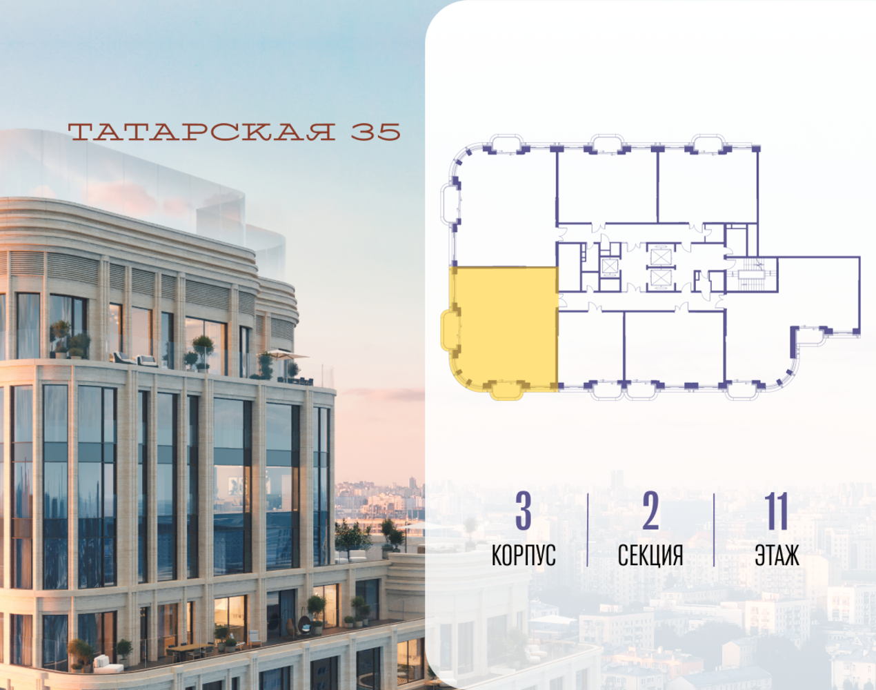 Продается просторная квартира площадью 119.10 м2 в жилом комплексе ТАТАРСКАЯ, 35. Квартира находится в 2 секции корпуса 3. Этаж 11-й из 23. Квартира без чистовой отделки, с просторной кухней 51.20 м2. Жилая площадь ― 18.10 м2. Высота потолка от 3.50. ТАТАРСКАЯ, 35 - новая архитектурная доминанта Замоскворечья, достопримечательность на фотопанорамах исторического центра Москвы. Элитный дом, созданный для тех, кто умеет смотреть далеко вперед, мыслить масштабно и воплощать собственный сценарий жизни. Вдохновляющие прогулки по променаду набережной, в уютных переулках, в парке «Зарядье», в Михайловском саду и Репинском сквере. Наслаждение высоким искусством в Третьяковской галерее, Доме Музыки, театральном музее им. А.А. Бахрушина, театре на Малой Ордынке. За окнами - Кремль, высотка на Котельнической, панорамы Замоскворечья и острова Балчуг, огни Садового кольца. Собственные спорт-румы, детская, репетиторская, бьюти-пространства, деловое пространство с коворкингом, переговорной и сигарной. Собственный трехуровневый фитнесс-центр с бассейном, тренажерным залом, сауной, хаммамом, массажным кабинетом. Площадь двора – 1,8 га, половина территории покрыта деревьями, кустарниками и лужайками. Дом расположен внутри Садового кольца – отсюда в считанные минуты можно добраться до важнейших мест столицы: достопримечательностей и парков, театров и ресторанов, деловых и административных центров. 7 минут до Кремля на автомобиле, 15 минут до Третьяковской галереи и 8 минут до Садового кольца пешком. Планировочные решения и визуализации предварительны, возможны изменения.