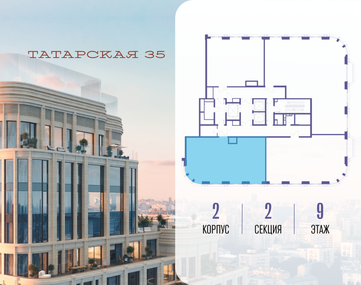Продается просторная квартира площадью 108.10 м2 в жилом комплексе ТАТАРСКАЯ, 35. Квартира находится в 2 секции корпуса 2. Этаж 9-й из 19. Квартира без чистовой отделки, с просторной кухней 28.80 м2. Жилая площадь ― 44.90 м2. Высота потолка от 3.50. ТАТАРСКАЯ, 35 - новая архитектурная доминанта Замоскворечья, достопримечательность на фотопанорамах исторического центра Москвы. Элитный дом, созданный для тех, кто умеет смотреть далеко вперед, мыслить масштабно и воплощать собственный сценарий жизни. Вдохновляющие прогулки по променаду набережной, в уютных переулках, в парке «Зарядье», в Михайловском саду и Репинском сквере. Наслаждение высоким искусством в Третьяковской галерее, Доме Музыки, театральном музее им. А.А. Бахрушина, театре на Малой Ордынке. За окнами - Кремль, высотка на Котельнической, панорамы Замоскворечья и острова Балчуг, огни Садового кольца. Собственные спорт-румы, детская, репетиторская, бьюти-пространства, деловое пространство с коворкингом, переговорной и сигарной. Собственный трехуровневый фитнесс-центр с бассейном, тренажерным залом, сауной, хаммамом, массажным кабинетом. Площадь двора – 1,8 га, половина территории покрыта деревьями, кустарниками и лужайками. Дом расположен внутри Садового кольца – отсюда в считанные минуты можно добраться до важнейших мест столицы: достопримечательностей и парков, театров и ресторанов, деловых и административных центров. 7 минут до Кремля на автомобиле, 15 минут до Третьяковской галереи и 8 минут до Садового кольца пешком. Планировочные решения и визуализации предварительны, возможны изменения.