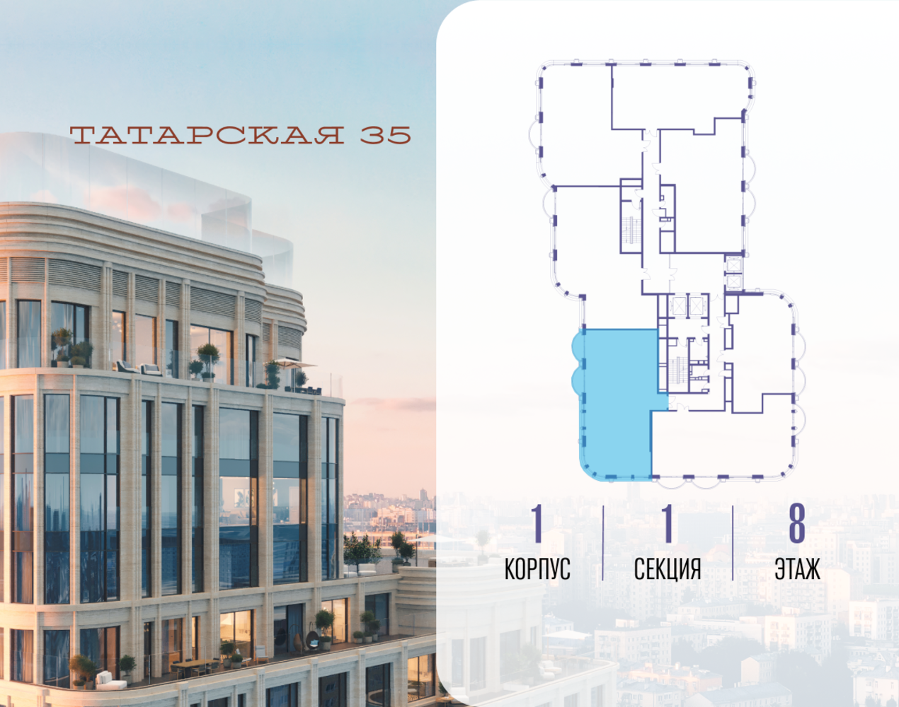 Скидка до 8% действует до 15.04.2026 г. при 100% оплате и не субсидированной ипотеке. Продается просторная квартира площадью 160.80 м2 в жилом комплексе ТАТАРСКАЯ, 35. Квартира находится в 1 секции корпуса 1. Этаж 8-й из 20. Квартира без чистовой отделки, с просторной кухней 39.50 м2. Жилая площадь ― 50.80 м2. Высота потолка от 3.50. ТАТАРСКАЯ, 35 - новая архитектурная доминанта Замоскворечья, достопримечательность на фотопанорамах исторического центра Москвы. Элитный дом, созданный для тех, кто умеет смотреть далеко вперед, мыслить масштабно и воплощать собственный сценарий жизни. Вдохновляющие прогулки по променаду набережной, в уютных переулках, в парке «Зарядье», в Михайловском саду и Репинском сквере. Наслаждение высоким искусством в Третьяковской галерее, Доме Музыки, театральном музее им. А.А. Бахрушина, театре на Малой Ордынке. За окнами - Кремль, высотка на Котельнической, панорамы Замоскворечья и острова Балчуг, огни Садового кольца. Собственные спорт-румы, детская, репетиторская, бьюти-пространства, деловое пространство с коворкингом, переговорной и сигарной. Собственный трехуровневый фитнесс-центр с бассейном, тренажерным залом, сауной, хаммамом, массажным кабинетом. Площадь двора – 1,8 га, половина территории покрыта деревьями, кустарниками и лужайками. Дом расположен внутри Садового кольца – отсюда в считанные минуты можно добраться до важнейших мест столицы: достопримечательностей и парков, театров и ресторанов, деловых и административных центров. 7 минут до Кремля на автомобиле, 15 минут до Третьяковской галереи и 8 минут до Садового кольца пешком. Планировочные решения и визуализации предварительны, возможны изменения.