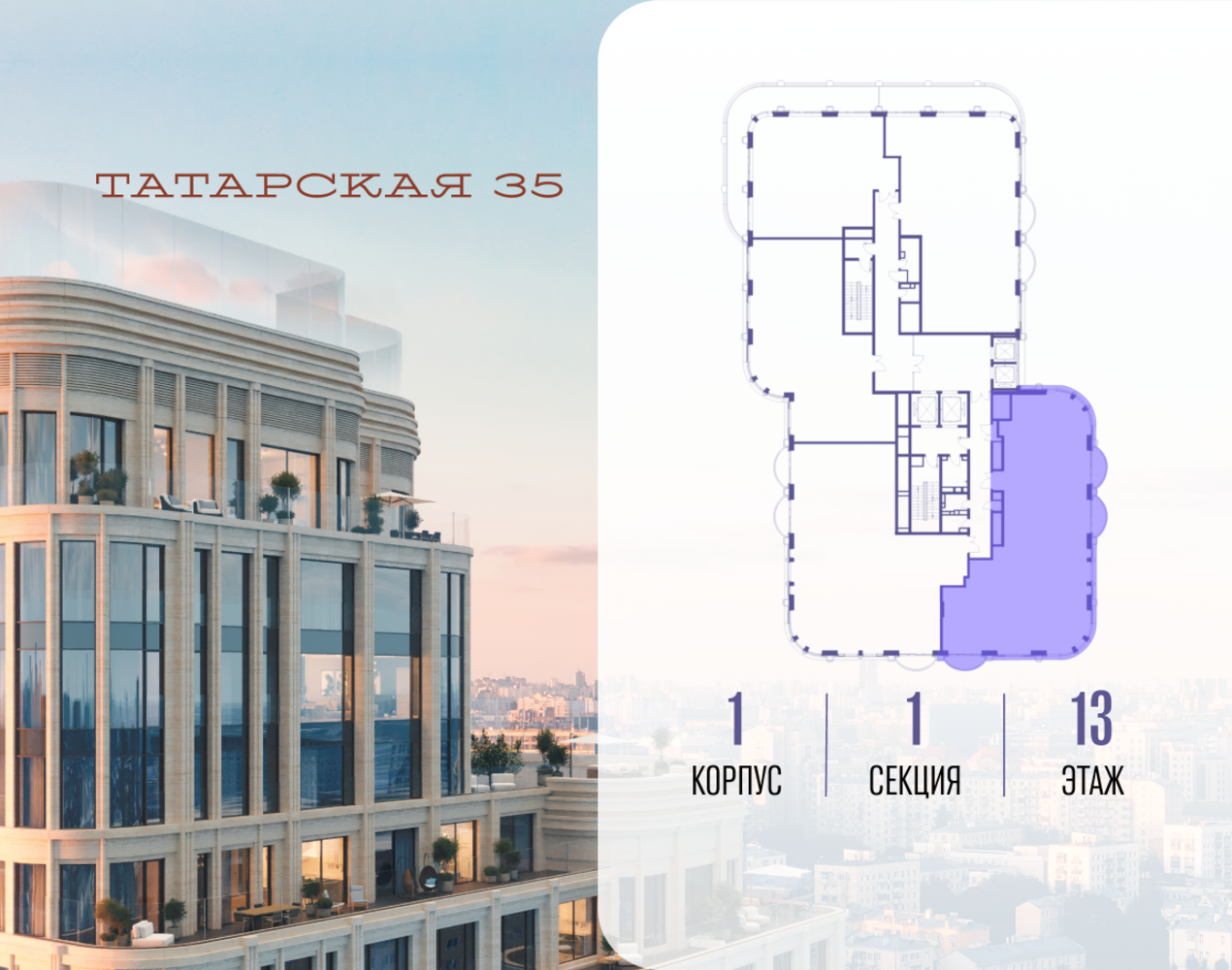 Продается просторная квартира площадью 211.10 м2 в жилом комплексе ТАТАРСКАЯ, 35. Квартира находится в 1 секции корпуса 1. Этаж 13-й из 20. Квартира без чистовой отделки, с просторной кухней 50.40 м2. Жилая площадь ― 84.60 м2. Высота потолка от 3.50. ТАТАРСКАЯ, 35 - новая архитектурная доминанта Замоскворечья, достопримечательность на фотопанорамах исторического центра Москвы. Элитный дом, созданный для тех, кто умеет смотреть далеко вперед, мыслить масштабно и воплощать собственный сценарий жизни. Вдохновляющие прогулки по променаду набережной, в уютных переулках, в парке «Зарядье», в Михайловском саду и Репинском сквере. Наслаждение высоким искусством в Третьяковской галерее, Доме Музыки, театральном музее им. А.А. Бахрушина, театре на Малой Ордынке. За окнами - Кремль, высотка на Котельнической, панорамы Замоскворечья и острова Балчуг, огни Садового кольца. Собственные спорт-румы, детская, репетиторская, бьюти-пространства, деловое пространство с коворкингом, переговорной и сигарной. Собственный трехуровневый фитнесс-центр с бассейном, тренажерным залом, сауной, хаммамом, массажным кабинетом. Площадь двора – 1,8 га, половина территории покрыта деревьями, кустарниками и лужайками. Дом расположен внутри Садового кольца – отсюда в считанные минуты можно добраться до важнейших мест столицы: достопримечательностей и парков, театров и ресторанов, деловых и административных центров. 7 минут до Кремля на автомобиле, 15 минут до Третьяковской галереи и 8 минут до Садового кольца пешком. Планировочные решения и визуализации предварительны, возможны изменения.