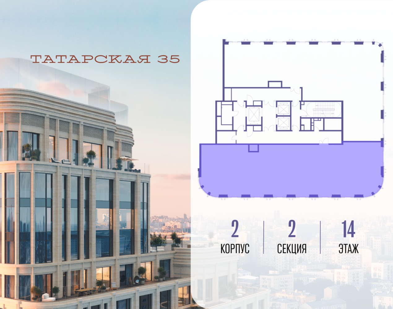 Продается просторная квартира площадью 224.50 м2 в жилом комплексе ТАТАРСКАЯ, 35. Квартира находится в 2 секции корпуса 2. Этаж 14-й из 19. Квартира без чистовой отделки, с просторной кухней 53.70 м2. Жилая площадь ― 110.90 м2. Высота потолка от 3.50. ТАТАРСКАЯ, 35 - новая архитектурная доминанта Замоскворечья, достопримечательность на фотопанорамах исторического центра Москвы. Элитный дом, созданный для тех, кто умеет смотреть далеко вперед, мыслить масштабно и воплощать собственный сценарий жизни. Вдохновляющие прогулки по променаду набережной, в уютных переулках, в парке «Зарядье», в Михайловском саду и Репинском сквере. Наслаждение высоким искусством в Третьяковской галерее, Доме Музыки, театральном музее им. А.А. Бахрушина, театре на Малой Ордынке. За окнами - Кремль, высотка на Котельнической, панорамы Замоскворечья и острова Балчуг, огни Садового кольца. Собственные спорт-румы, детская, репетиторская, бьюти-пространства, деловое пространство с коворкингом, переговорной и сигарной. Собственный трехуровневый фитнесс-центр с бассейном, тренажерным залом, сауной, хаммамом, массажным кабинетом. Площадь двора – 1,8 га, половина территории покрыта деревьями, кустарниками и лужайками. Дом расположен внутри Садового кольца – отсюда в считанные минуты можно добраться до важнейших мест столицы: достопримечательностей и парков, театров и ресторанов, деловых и административных центров. 7 минут до Кремля на автомобиле, 15 минут до Третьяковской галереи и 8 минут до Садового кольца пешком. Планировочные решения и визуализации предварительны, возможны изменения.