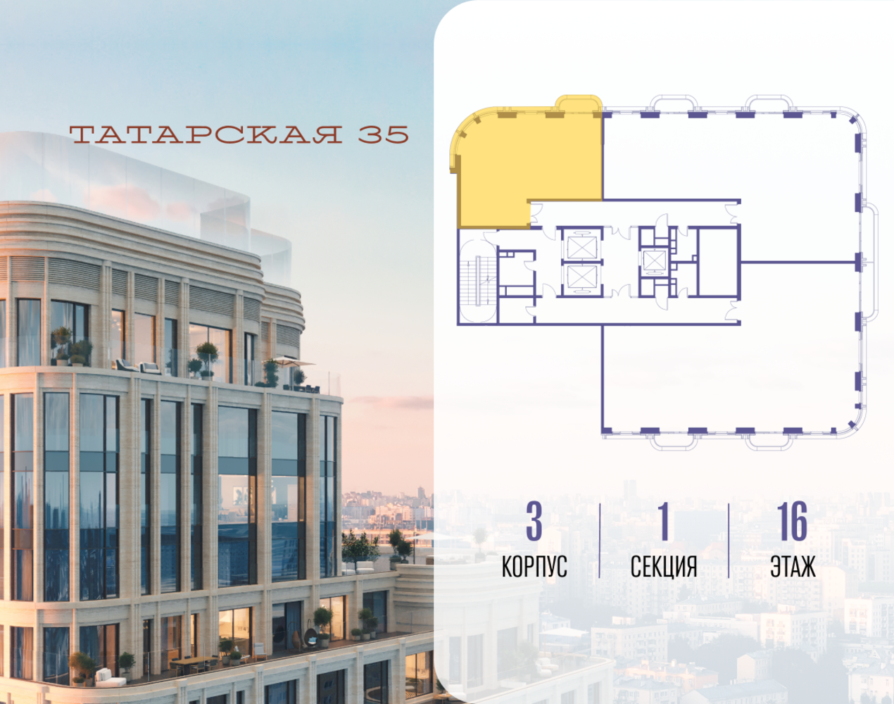 Продается просторная квартира площадью 72.10 м2 в жилом комплексе ТАТАРСКАЯ, 35. Квартира находится в 1 секции корпуса 3. Этаж 16-й из 24. Квартира без чистовой отделки, с просторной кухней 18.20 м2. Жилая площадь ― 27.60 м2. Высота потолка от 3.50. ТАТАРСКАЯ, 35 - новая архитектурная доминанта Замоскворечья, достопримечательность на фотопанорамах исторического центра Москвы. Элитный дом, созданный для тех, кто умеет смотреть далеко вперед, мыслить масштабно и воплощать собственный сценарий жизни. Вдохновляющие прогулки по променаду набережной, в уютных переулках, в парке «Зарядье», в Михайловском саду и Репинском сквере. Наслаждение высоким искусством в Третьяковской галерее, Доме Музыки, театральном музее им. А.А. Бахрушина, театре на Малой Ордынке. За окнами - Кремль, высотка на Котельнической, панорамы Замоскворечья и острова Балчуг, огни Садового кольца. Собственные спорт-румы, детская, репетиторская, бьюти-пространства, деловое пространство с коворкингом, переговорной и сигарной. Собственный трехуровневый фитнесс-центр с бассейном, тренажерным залом, сауной, хаммамом, массажным кабинетом. Площадь двора – 1,8 га, половина территории покрыта деревьями, кустарниками и лужайками. Дом расположен внутри Садового кольца – отсюда в считанные минуты можно добраться до важнейших мест столицы: достопримечательностей и парков, театров и ресторанов, деловых и административных центров. 7 минут до Кремля на автомобиле, 15 минут до Третьяковской галереи и 8 минут до Садового кольца пешком. Планировочные решения и визуализации предварительны, возможны изменения.