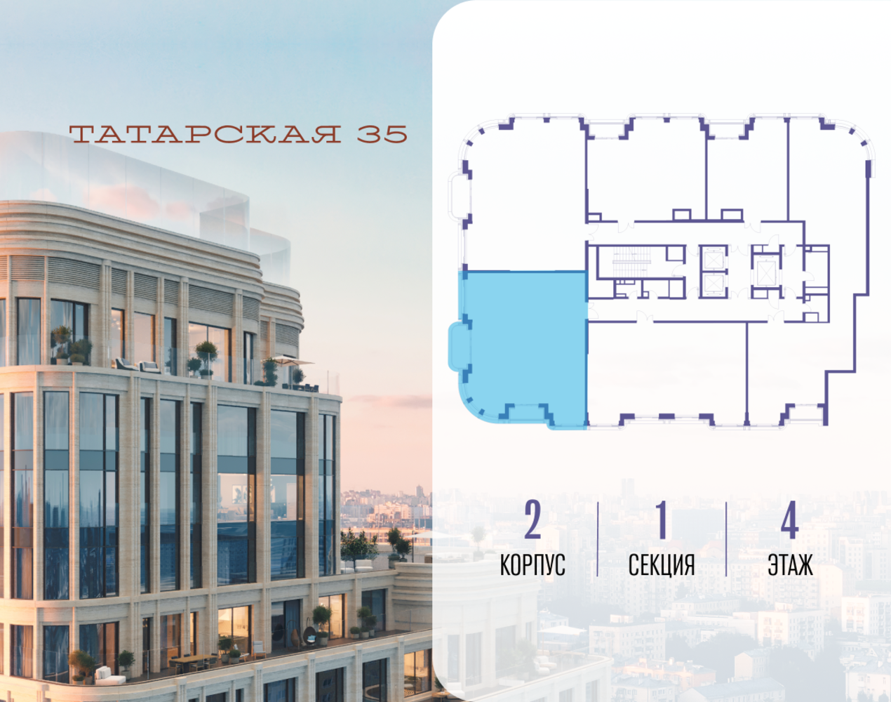 Продается просторная квартира площадью 127.80 м2 в жилом комплексе ТАТАРСКАЯ, 35. Квартира находится в 1 секции корпуса 2. Этаж 4-й из 19. Квартира без чистовой отделки, с просторной кухней 39.80 м2. Жилая площадь ― 45.60 м2. Высота потолка от 3.50. ТАТАРСКАЯ, 35 - новая архитектурная доминанта Замоскворечья, достопримечательность на фотопанорамах исторического центра Москвы. Элитный дом, созданный для тех, кто умеет смотреть далеко вперед, мыслить масштабно и воплощать собственный сценарий жизни. Вдохновляющие прогулки по променаду набережной, в уютных переулках, в парке «Зарядье», в Михайловском саду и Репинском сквере. Наслаждение высоким искусством в Третьяковской галерее, Доме Музыки, театральном музее им. А.А. Бахрушина, театре на Малой Ордынке. За окнами - Кремль, высотка на Котельнической, панорамы Замоскворечья и острова Балчуг, огни Садового кольца. Собственные спорт-румы, детская, репетиторская, бьюти-пространства, деловое пространство с коворкингом, переговорной и сигарной. Собственный трехуровневый фитнесс-центр с бассейном, тренажерным залом, сауной, хаммамом, массажным кабинетом. Площадь двора – 1,8 га, половина территории покрыта деревьями, кустарниками и лужайками. Дом расположен внутри Садового кольца – отсюда в считанные минуты можно добраться до важнейших мест столицы: достопримечательностей и парков, театров и ресторанов, деловых и административных центров. 7 минут до Кремля на автомобиле, 15 минут до Третьяковской галереи и 8 минут до Садового кольца пешком. Планировочные решения и визуализации предварительны, возможны изменения.