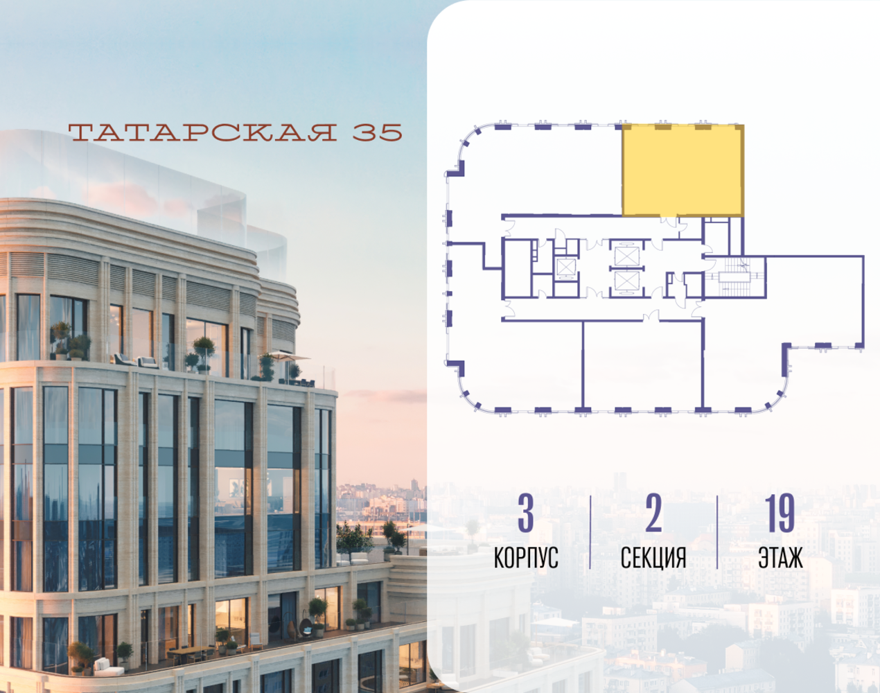 Продается просторная квартира площадью 73.00 м2 в жилом комплексе ТАТАРСКАЯ, 35. Квартира находится в 2 секции корпуса 3. Этаж 19-й из 23. Квартира без чистовой отделки, с просторной кухней 25.70 м2. Жилая площадь ― 33.80 м2. Высота потолка от 3.50. ТАТАРСКАЯ, 35 - новая архитектурная доминанта Замоскворечья, достопримечательность на фотопанорамах исторического центра Москвы. Элитный дом, созданный для тех, кто умеет смотреть далеко вперед, мыслить масштабно и воплощать собственный сценарий жизни. Вдохновляющие прогулки по променаду набережной, в уютных переулках, в парке «Зарядье», в Михайловском саду и Репинском сквере. Наслаждение высоким искусством в Третьяковской галерее, Доме Музыки, театральном музее им. А.А. Бахрушина, театре на Малой Ордынке. За окнами - Кремль, высотка на Котельнической, панорамы Замоскворечья и острова Балчуг, огни Садового кольца. Собственные спорт-румы, детская, репетиторская, бьюти-пространства, деловое пространство с коворкингом, переговорной и сигарной. Собственный трехуровневый фитнесс-центр с бассейном, тренажерным залом, сауной, хаммамом, массажным кабинетом. Площадь двора – 1,8 га, половина территории покрыта деревьями, кустарниками и лужайками. Дом расположен внутри Садового кольца – отсюда в считанные минуты можно добраться до важнейших мест столицы: достопримечательностей и парков, театров и ресторанов, деловых и административных центров. 7 минут до Кремля на автомобиле, 15 минут до Третьяковской галереи и 8 минут до Садового кольца пешком. Планировочные решения и визуализации предварительны, возможны изменения.