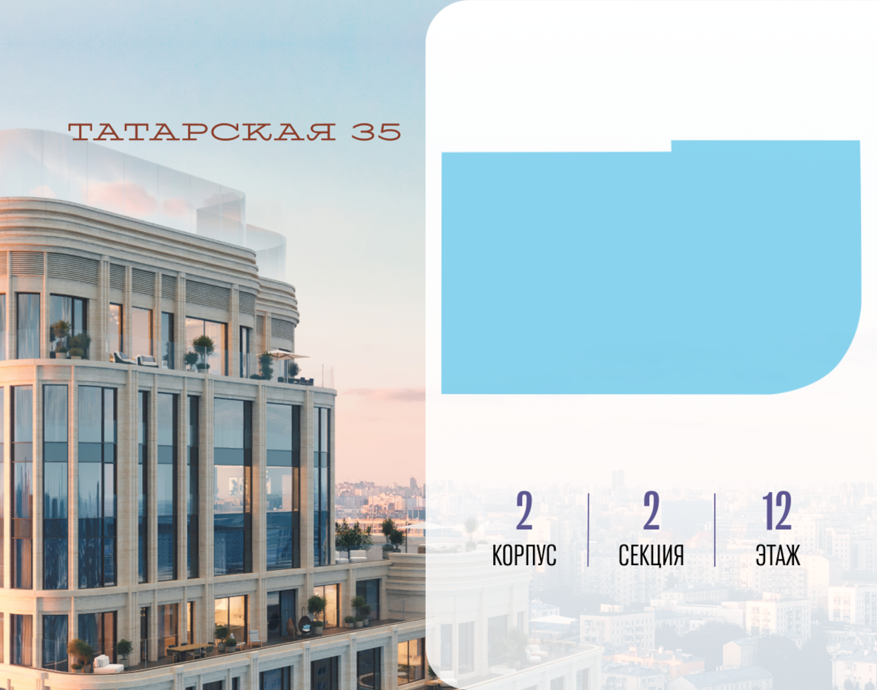Продается просторная квартира площадью 112.60 м2 в жилом комплексе ТАТАРСКАЯ, 35. Квартира находится в 2 секции корпуса 2. Этаж 12-й из 19. Квартира без чистовой отделки, с просторной кухней 26.80 м2. Жилая площадь ― 46.00 м2. Высота потолка от 3.50. ТАТАРСКАЯ, 35 - новая архитектурная доминанта Замоскворечья, достопримечательность на фотопанорамах исторического центра Москвы. Элитный дом, созданный для тех, кто умеет смотреть далеко вперед, мыслить масштабно и воплощать собственный сценарий жизни. Вдохновляющие прогулки по променаду набережной, в уютных переулках, в парке «Зарядье», в Михайловском саду и Репинском сквере. Наслаждение высоким искусством в Третьяковской галерее, Доме Музыки, театральном музее им. А.А. Бахрушина, театре на Малой Ордынке. За окнами - Кремль, высотка на Котельнической, панорамы Замоскворечья и острова Балчуг, огни Садового кольца. Собственные спорт-румы, детская, репетиторская, бьюти-пространства, деловое пространство с коворкингом, переговорной и сигарной. Собственный трехуровневый фитнесс-центр с бассейном, тренажерным залом, сауной, хаммамом, массажным кабинетом. Площадь двора – 1,8 га, половина территории покрыта деревьями, кустарниками и лужайками. Дом расположен внутри Садового кольца – отсюда в считанные минуты можно добраться до важнейших мест столицы: достопримечательностей и парков, театров и ресторанов, деловых и административных центров. 7 минут до Кремля на автомобиле, 15 минут до Третьяковской галереи и 8 минут до Садового кольца пешком. Планировочные решения и визуализации предварительны, возможны изменения.
