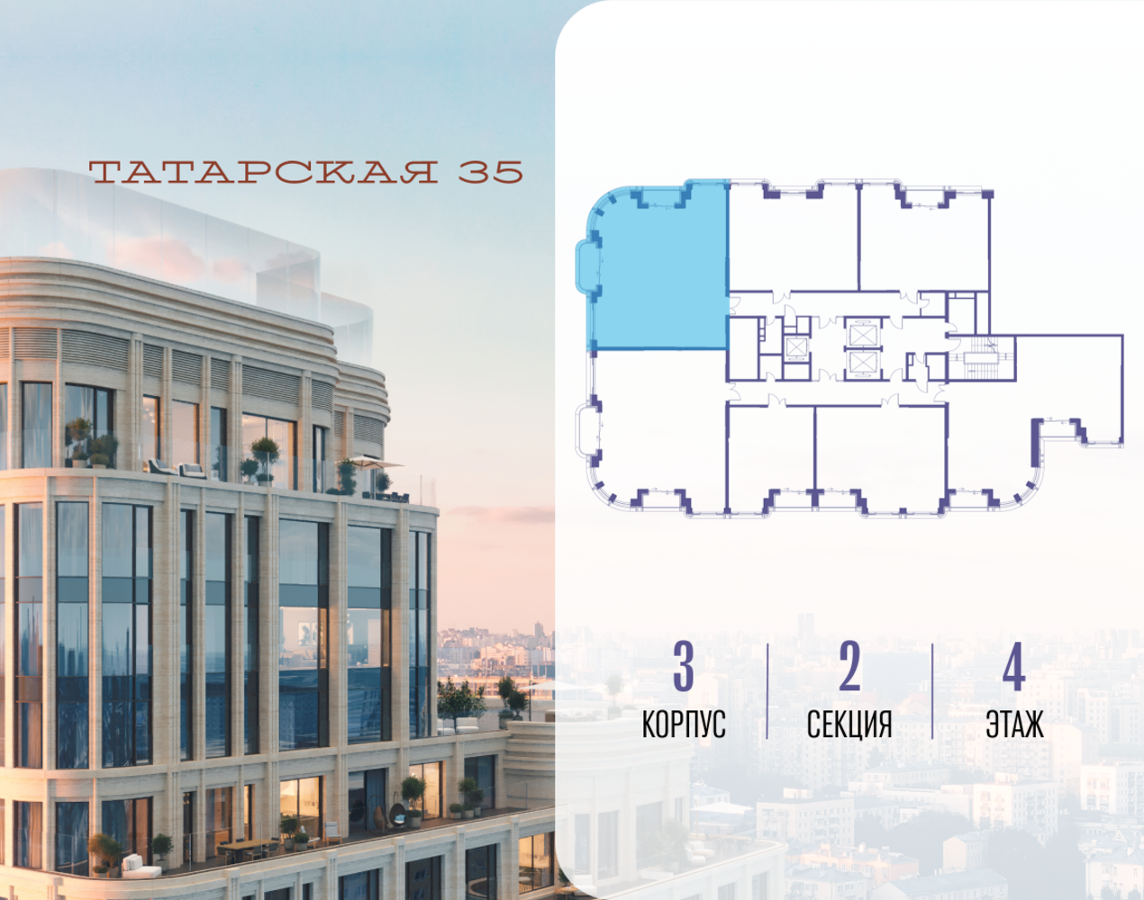 Скидка до 8% действует до 15.04.2026 г. при 100% оплате и не субсидированной ипотеке. Продается просторная квартира площадью 119.50 м2 в жилом комплексе ТАТАРСКАЯ, 35. Квартира находится в 2 секции корпуса 3. Этаж 4-й из 23. Квартира без чистовой отделки, с просторной кухней 36.30 м2. Жилая площадь ― 48.20 м2. Высота потолка от 3.50. ТАТАРСКАЯ, 35 - новая архитектурная доминанта Замоскворечья, достопримечательность на фотопанорамах исторического центра Москвы. Элитный дом, созданный для тех, кто умеет смотреть далеко вперед, мыслить масштабно и воплощать собственный сценарий жизни. Вдохновляющие прогулки по променаду набережной, в уютных переулках, в парке «Зарядье», в Михайловском саду и Репинском сквере. Наслаждение высоким искусством в Третьяковской галерее, Доме Музыки, театральном музее им. А.А. Бахрушина, театре на Малой Ордынке. За окнами - Кремль, высотка на Котельнической, панорамы Замоскворечья и острова Балчуг, огни Садового кольца. Собственные спорт-румы, детская, репетиторская, бьюти-пространства, деловое пространство с коворкингом, переговорной и сигарной. Собственный трехуровневый фитнесс-центр с бассейном, тренажерным залом, сауной, хаммамом, массажным кабинетом. Площадь двора – 1,8 га, половина территории покрыта деревьями, кустарниками и лужайками. Дом расположен внутри Садового кольца – отсюда в считанные минуты можно добраться до важнейших мест столицы: достопримечательностей и парков, театров и ресторанов, деловых и административных центров. 7 минут до Кремля на автомобиле, 15 минут до Третьяковской галереи и 8 минут до Садового кольца пешком. Планировочные решения и визуализации предварительны, возможны изменения.