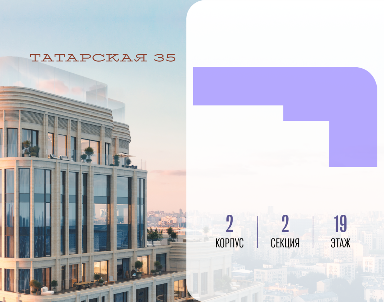 Продается просторная квартира площадью 263.60 м2 в жилом комплексе ТАТАРСКАЯ, 35. Квартира находится в 2 секции корпуса 2. Этаж 19-й из 19. Квартира без чистовой отделки, с просторной кухней 83.90 м2. Жилая площадь ― 89.00 м2. Высота потолка от 3.50. ТАТАРСКАЯ, 35 - новая архитектурная доминанта Замоскворечья, достопримечательность на фотопанорамах исторического центра Москвы. Элитный дом, созданный для тех, кто умеет смотреть далеко вперед, мыслить масштабно и воплощать собственный сценарий жизни. Вдохновляющие прогулки по променаду набережной, в уютных переулках, в парке «Зарядье», в Михайловском саду и Репинском сквере. Наслаждение высоким искусством в Третьяковской галерее, Доме Музыки, театральном музее им. А.А. Бахрушина, театре на Малой Ордынке. За окнами - Кремль, высотка на Котельнической, панорамы Замоскворечья и острова Балчуг, огни Садового кольца. Собственные спорт-румы, детская, репетиторская, бьюти-пространства, деловое пространство с коворкингом, переговорной и сигарной. Собственный трехуровневый фитнесс-центр с бассейном, тренажерным залом, сауной, хаммамом, массажным кабинетом. Площадь двора – 1,8 га, половина территории покрыта деревьями, кустарниками и лужайками. Дом расположен внутри Садового кольца – отсюда в считанные минуты можно добраться до важнейших мест столицы: достопримечательностей и парков, театров и ресторанов, деловых и административных центров. 7 минут до Кремля на автомобиле, 15 минут до Третьяковской галереи и 8 минут до Садового кольца пешком. Планировочные решения и визуализации предварительны, возможны изменения.