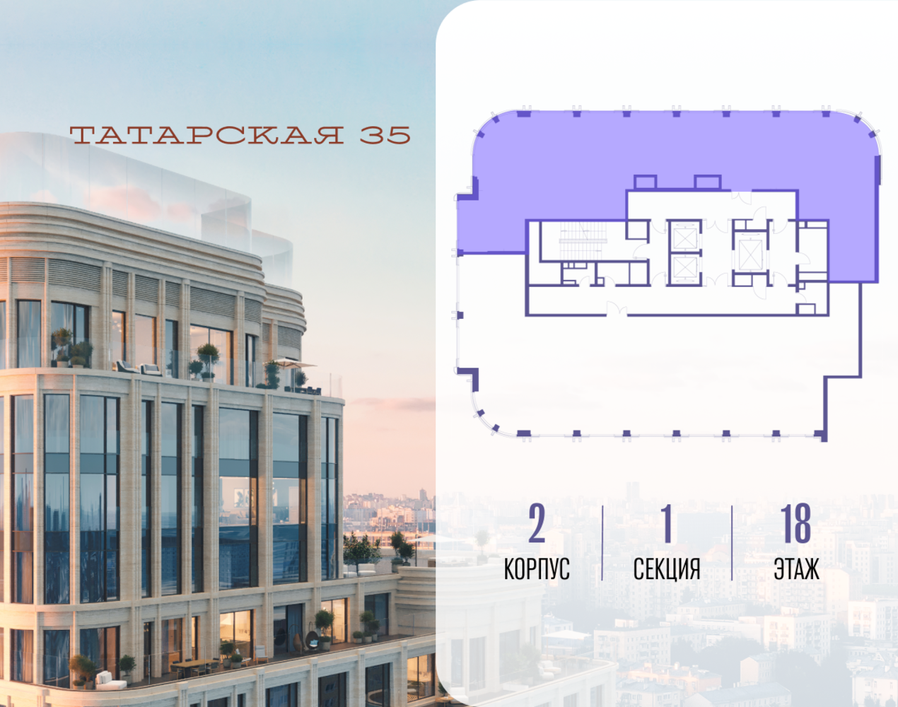 Продается просторная квартира площадью 201.00 м2 в жилом комплексе ТАТАРСКАЯ, 35. Квартира находится в 1 секции корпуса 2. Этаж 18-й из 19. Квартира без чистовой отделки, с просторной кухней 55.80 м2. Жилая площадь ― 64.20 м2. Высота потолка от 3.50. ТАТАРСКАЯ, 35 - новая архитектурная доминанта Замоскворечья, достопримечательность на фотопанорамах исторического центра Москвы. Элитный дом, созданный для тех, кто умеет смотреть далеко вперед, мыслить масштабно и воплощать собственный сценарий жизни. Вдохновляющие прогулки по променаду набережной, в уютных переулках, в парке «Зарядье», в Михайловском саду и Репинском сквере. Наслаждение высоким искусством в Третьяковской галерее, Доме Музыки, театральном музее им. А.А. Бахрушина, театре на Малой Ордынке. За окнами - Кремль, высотка на Котельнической, панорамы Замоскворечья и острова Балчуг, огни Садового кольца. Собственные спорт-румы, детская, репетиторская, бьюти-пространства, деловое пространство с коворкингом, переговорной и сигарной. Собственный трехуровневый фитнесс-центр с бассейном, тренажерным залом, сауной, хаммамом, массажным кабинетом. Площадь двора – 1,8 га, половина территории покрыта деревьями, кустарниками и лужайками. Дом расположен внутри Садового кольца – отсюда в считанные минуты можно добраться до важнейших мест столицы: достопримечательностей и парков, театров и ресторанов, деловых и административных центров. 7 минут до Кремля на автомобиле, 15 минут до Третьяковской галереи и 8 минут до Садового кольца пешком. Планировочные решения и визуализации предварительны, возможны изменения.