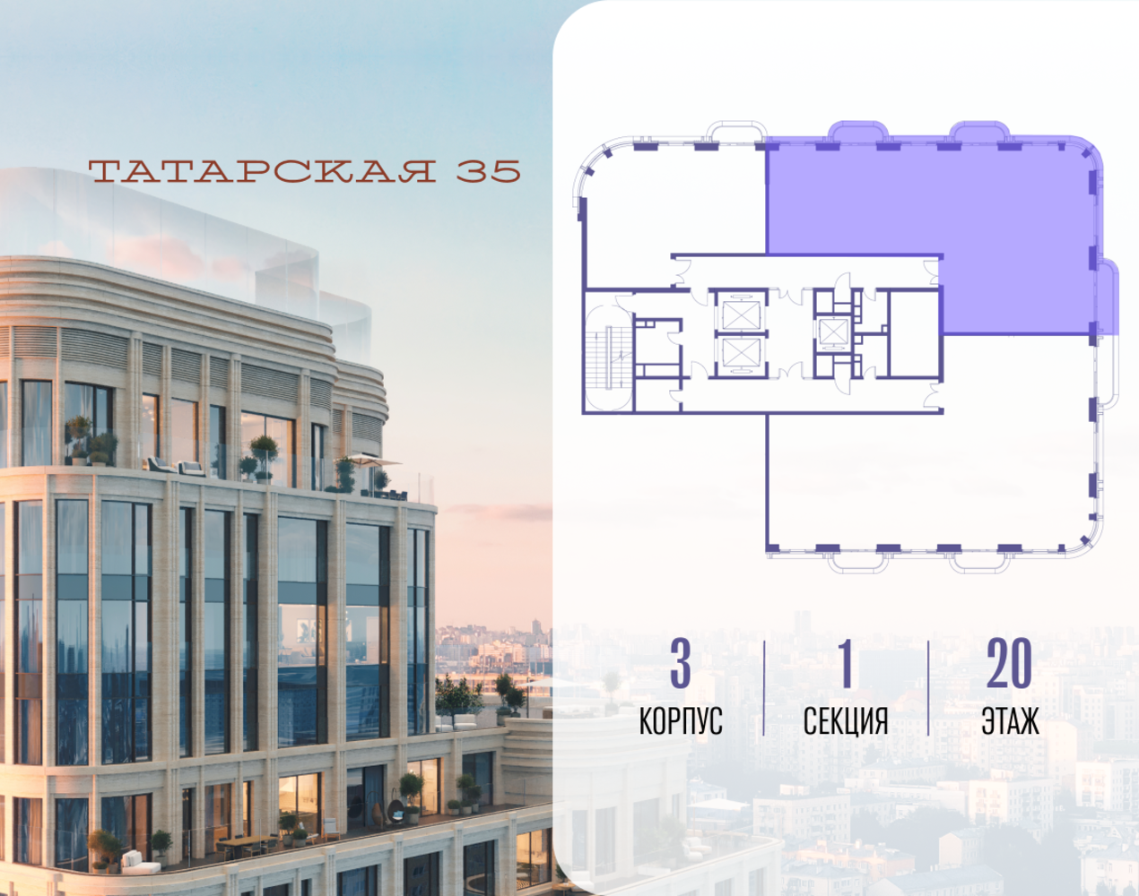 Продается просторная квартира площадью 153.40 м2 в жилом комплексе ТАТАРСКАЯ, 35. Квартира находится в 1 секции корпуса 3. Этаж 20-й из 24. Квартира без чистовой отделки, с просторной кухней 55.60 м2. Жилая площадь ― 57.20 м2. Высота потолка от 3.50. ТАТАРСКАЯ, 35 - новая архитектурная доминанта Замоскворечья, достопримечательность на фотопанорамах исторического центра Москвы. Элитный дом, созданный для тех, кто умеет смотреть далеко вперед, мыслить масштабно и воплощать собственный сценарий жизни. Вдохновляющие прогулки по променаду набережной, в уютных переулках, в парке «Зарядье», в Михайловском саду и Репинском сквере. Наслаждение высоким искусством в Третьяковской галерее, Доме Музыки, театральном музее им. А.А. Бахрушина, театре на Малой Ордынке. За окнами - Кремль, высотка на Котельнической, панорамы Замоскворечья и острова Балчуг, огни Садового кольца. Собственные спорт-румы, детская, репетиторская, бьюти-пространства, деловое пространство с коворкингом, переговорной и сигарной. Собственный трехуровневый фитнесс-центр с бассейном, тренажерным залом, сауной, хаммамом, массажным кабинетом. Площадь двора – 1,8 га, половина территории покрыта деревьями, кустарниками и лужайками. Дом расположен внутри Садового кольца – отсюда в считанные минуты можно добраться до важнейших мест столицы: достопримечательностей и парков, театров и ресторанов, деловых и административных центров. 7 минут до Кремля на автомобиле, 15 минут до Третьяковской галереи и 8 минут до Садового кольца пешком. Планировочные решения и визуализации предварительны, возможны изменения.