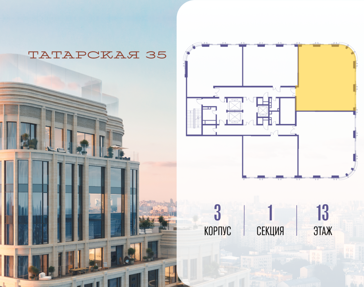 Продается просторная квартира площадью 129.60 м2 в жилом комплексе ТАТАРСКАЯ, 35. Квартира находится в 1 секции корпуса 3. Этаж 13-й из 24. Квартира без чистовой отделки, с просторной кухней 57.70 м2. Жилая площадь ― 30.90 м2. Высота потолка от 3.50. ТАТАРСКАЯ, 35 - новая архитектурная доминанта Замоскворечья, достопримечательность на фотопанорамах исторического центра Москвы. Элитный дом, созданный для тех, кто умеет смотреть далеко вперед, мыслить масштабно и воплощать собственный сценарий жизни. Вдохновляющие прогулки по променаду набережной, в уютных переулках, в парке «Зарядье», в Михайловском саду и Репинском сквере. Наслаждение высоким искусством в Третьяковской галерее, Доме Музыки, театральном музее им. А.А. Бахрушина, театре на Малой Ордынке. За окнами - Кремль, высотка на Котельнической, панорамы Замоскворечья и острова Балчуг, огни Садового кольца. Собственные спорт-румы, детская, репетиторская, бьюти-пространства, деловое пространство с коворкингом, переговорной и сигарной. Собственный трехуровневый фитнесс-центр с бассейном, тренажерным залом, сауной, хаммамом, массажным кабинетом. Площадь двора – 1,8 га, половина территории покрыта деревьями, кустарниками и лужайками. Дом расположен внутри Садового кольца – отсюда в считанные минуты можно добраться до важнейших мест столицы: достопримечательностей и парков, театров и ресторанов, деловых и административных центров. 7 минут до Кремля на автомобиле, 15 минут до Третьяковской галереи и 8 минут до Садового кольца пешком. Планировочные решения и визуализации предварительны, возможны изменения.