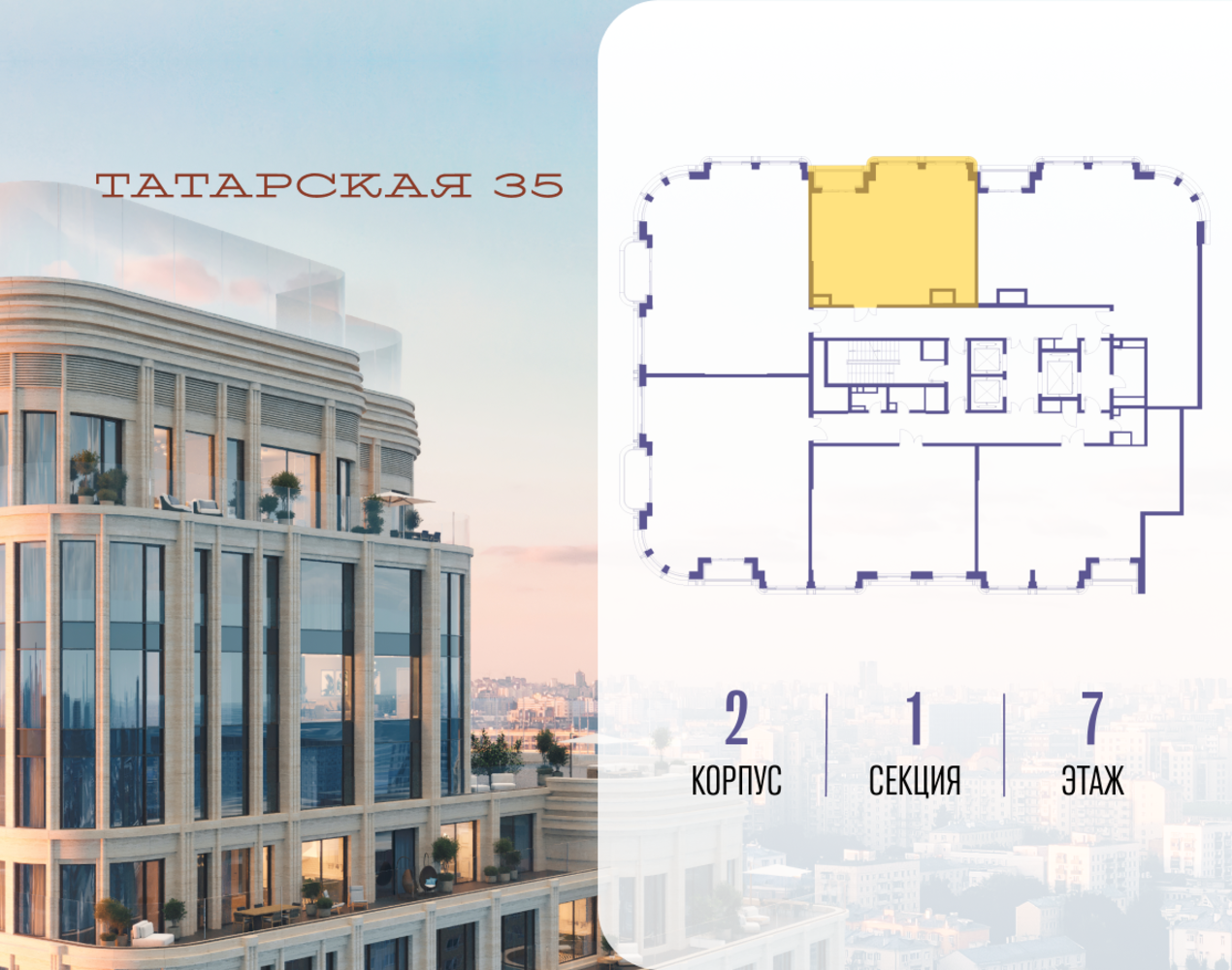 Продается просторная квартира площадью 83.20 м2 в жилом комплексе ТАТАРСКАЯ, 35. Квартира находится в 1 секции корпуса 2. Этаж 7-й из 19. Квартира без чистовой отделки, с просторной кухней 30.70 м2. Жилая площадь ― 26.80 м2. Высота потолка от 3.50. ТАТАРСКАЯ, 35 - новая архитектурная доминанта Замоскворечья, достопримечательность на фотопанорамах исторического центра Москвы. Элитный дом, созданный для тех, кто умеет смотреть далеко вперед, мыслить масштабно и воплощать собственный сценарий жизни. Вдохновляющие прогулки по променаду набережной, в уютных переулках, в парке «Зарядье», в Михайловском саду и Репинском сквере. Наслаждение высоким искусством в Третьяковской галерее, Доме Музыки, театральном музее им. А.А. Бахрушина, театре на Малой Ордынке. За окнами - Кремль, высотка на Котельнической, панорамы Замоскворечья и острова Балчуг, огни Садового кольца. Собственные спорт-румы, детская, репетиторская, бьюти-пространства, деловое пространство с коворкингом, переговорной и сигарной. Собственный трехуровневый фитнесс-центр с бассейном, тренажерным залом, сауной, хаммамом, массажным кабинетом. Площадь двора – 1,8 га, половина территории покрыта деревьями, кустарниками и лужайками. Дом расположен внутри Садового кольца – отсюда в считанные минуты можно добраться до важнейших мест столицы: достопримечательностей и парков, театров и ресторанов, деловых и административных центров. 7 минут до Кремля на автомобиле, 15 минут до Третьяковской галереи и 8 минут до Садового кольца пешком. Планировочные решения и визуализации предварительны, возможны изменения.