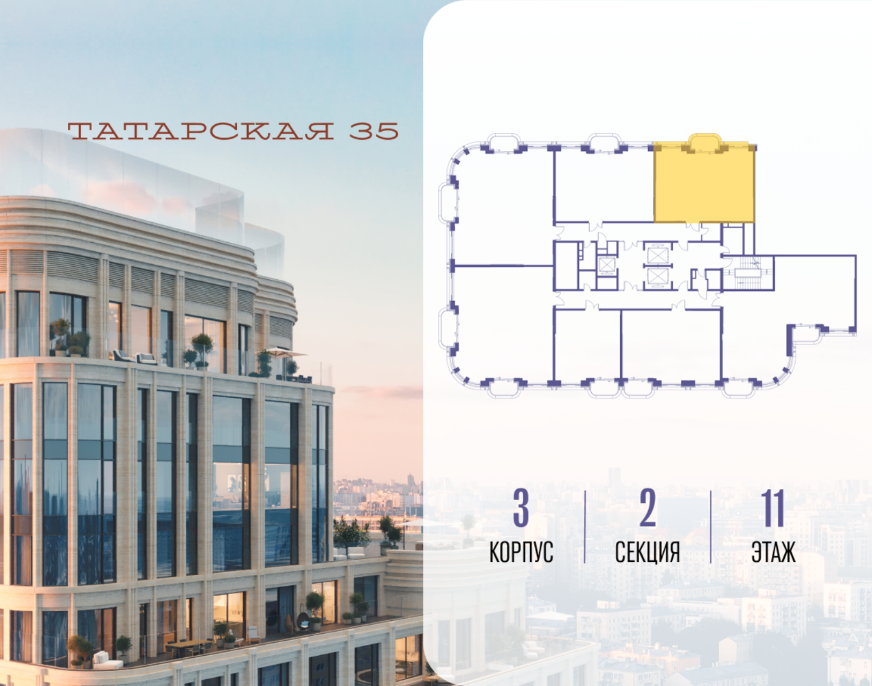 Продается просторная квартира площадью 71.70 м2 в жилом комплексе ТАТАРСКАЯ, 35. Квартира находится в 2 секции корпуса 3. Этаж 11-й из 23. Квартира без чистовой отделки, с просторной кухней 23.90 м2. Жилая площадь ― 32.50 м2. Высота потолка от 3.50. ТАТАРСКАЯ, 35 - новая архитектурная доминанта Замоскворечья, достопримечательность на фотопанорамах исторического центра Москвы. Элитный дом, созданный для тех, кто умеет смотреть далеко вперед, мыслить масштабно и воплощать собственный сценарий жизни. Вдохновляющие прогулки по променаду набережной, в уютных переулках, в парке «Зарядье», в Михайловском саду и Репинском сквере. Наслаждение высоким искусством в Третьяковской галерее, Доме Музыки, театральном музее им. А.А. Бахрушина, театре на Малой Ордынке. За окнами - Кремль, высотка на Котельнической, панорамы Замоскворечья и острова Балчуг, огни Садового кольца. Собственные спорт-румы, детская, репетиторская, бьюти-пространства, деловое пространство с коворкингом, переговорной и сигарной. Собственный трехуровневый фитнесс-центр с бассейном, тренажерным залом, сауной, хаммамом, массажным кабинетом. Площадь двора – 1,8 га, половина территории покрыта деревьями, кустарниками и лужайками. Дом расположен внутри Садового кольца – отсюда в считанные минуты можно добраться до важнейших мест столицы: достопримечательностей и парков, театров и ресторанов, деловых и административных центров. 7 минут до Кремля на автомобиле, 15 минут до Третьяковской галереи и 8 минут до Садового кольца пешком. Планировочные решения и визуализации предварительны, возможны изменения.