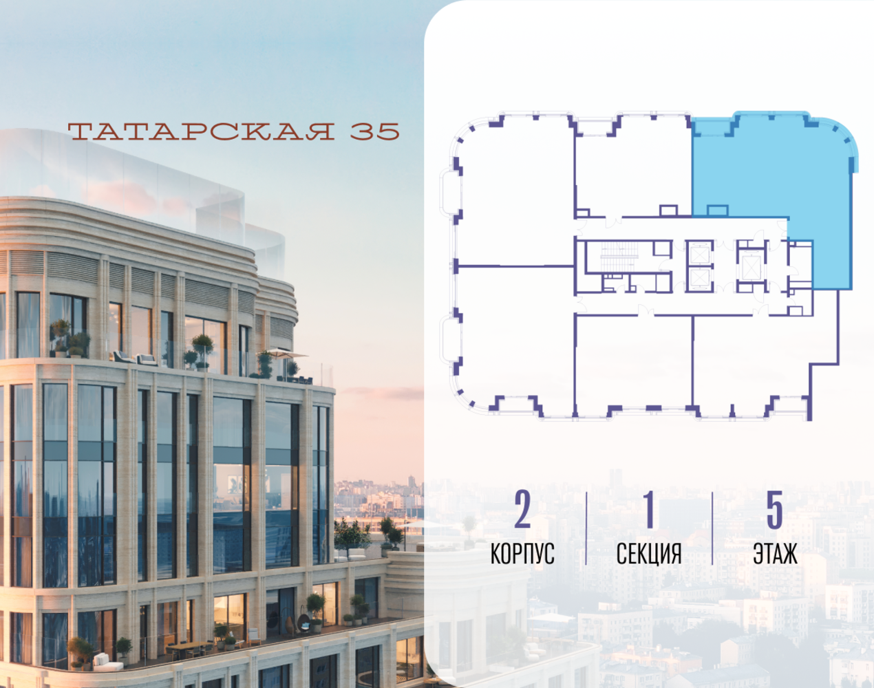 Продается просторная квартира площадью 137.40 м2 в жилом комплексе ТАТАРСКАЯ, 35. Квартира находится в 1 секции корпуса 2. Этаж 5-й из 19. Квартира без чистовой отделки, с просторной кухней 40.00 м2. Жилая площадь ― 45.40 м2. Высота потолка от 3.50. ТАТАРСКАЯ, 35 - новая архитектурная доминанта Замоскворечья, достопримечательность на фотопанорамах исторического центра Москвы. Элитный дом, созданный для тех, кто умеет смотреть далеко вперед, мыслить масштабно и воплощать собственный сценарий жизни. Вдохновляющие прогулки по променаду набережной, в уютных переулках, в парке «Зарядье», в Михайловском саду и Репинском сквере. Наслаждение высоким искусством в Третьяковской галерее, Доме Музыки, театральном музее им. А.А. Бахрушина, театре на Малой Ордынке. За окнами - Кремль, высотка на Котельнической, панорамы Замоскворечья и острова Балчуг, огни Садового кольца. Собственные спорт-румы, детская, репетиторская, бьюти-пространства, деловое пространство с коворкингом, переговорной и сигарной. Собственный трехуровневый фитнесс-центр с бассейном, тренажерным залом, сауной, хаммамом, массажным кабинетом. Площадь двора – 1,8 га, половина территории покрыта деревьями, кустарниками и лужайками. Дом расположен внутри Садового кольца – отсюда в считанные минуты можно добраться до важнейших мест столицы: достопримечательностей и парков, театров и ресторанов, деловых и административных центров. 7 минут до Кремля на автомобиле, 15 минут до Третьяковской галереи и 8 минут до Садового кольца пешком. Планировочные решения и визуализации предварительны, возможны изменения.