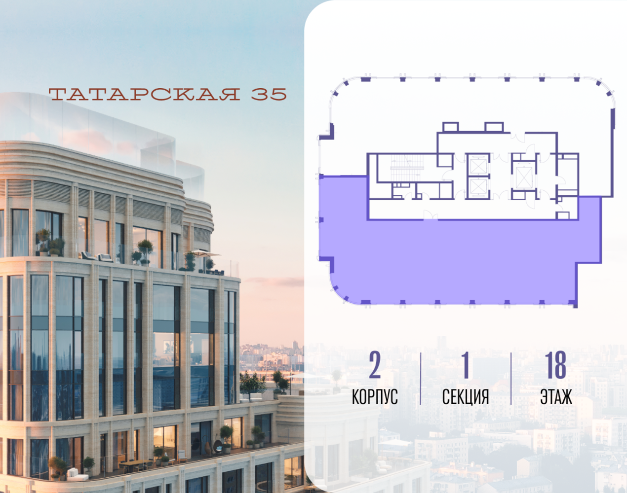 Продается просторная квартира площадью 241.70 м2 в жилом комплексе ТАТАРСКАЯ, 35. Квартира находится в 1 секции корпуса 2. Этаж 18-й из 19. Квартира без чистовой отделки, с просторной кухней 83.30 м2. Жилая площадь ― 84.60 м2. Высота потолка от 3.50. ТАТАРСКАЯ, 35 - новая архитектурная доминанта Замоскворечья, достопримечательность на фотопанорамах исторического центра Москвы. Элитный дом, созданный для тех, кто умеет смотреть далеко вперед, мыслить масштабно и воплощать собственный сценарий жизни. Вдохновляющие прогулки по променаду набережной, в уютных переулках, в парке «Зарядье», в Михайловском саду и Репинском сквере. Наслаждение высоким искусством в Третьяковской галерее, Доме Музыки, театральном музее им. А.А. Бахрушина, театре на Малой Ордынке. За окнами - Кремль, высотка на Котельнической, панорамы Замоскворечья и острова Балчуг, огни Садового кольца. Собственные спорт-румы, детская, репетиторская, бьюти-пространства, деловое пространство с коворкингом, переговорной и сигарной. Собственный трехуровневый фитнесс-центр с бассейном, тренажерным залом, сауной, хаммамом, массажным кабинетом. Площадь двора – 1,8 га, половина территории покрыта деревьями, кустарниками и лужайками. Дом расположен внутри Садового кольца – отсюда в считанные минуты можно добраться до важнейших мест столицы: достопримечательностей и парков, театров и ресторанов, деловых и административных центров. 7 минут до Кремля на автомобиле, 15 минут до Третьяковской галереи и 8 минут до Садового кольца пешком. Планировочные решения и визуализации предварительны, возможны изменения.