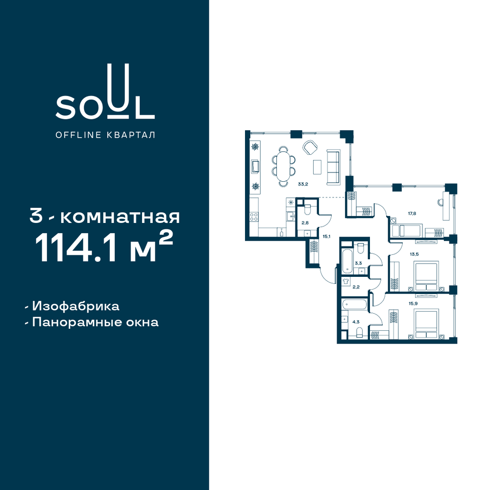 Цены указаны с условием 100% оплаты и стандартной ипотеки. Прямая продажа от застройщика! Продается 3-к. квартира номер 715 общей площадью 114.1 кв.м. на 29-м этаже 29 этажного дома, Корпус 5. Без отделки. Проект бизнес-класса SOUL от девелопера FORMA. До метро Сокол 10 мин пешком. Архитектура от британского бюро SimpsonHaugh. Благоустройство дворов — Gillespies и GAFA. Территория состоит из культурного парка и приватных дворов. Озеленение в эстетике лесного оазиса. Насыщенное благоустройство: прогулочные тропинки, релакс-зоны, пряный и сенсорный сады, развивающие детские площадки и воркауты. В центре проекта объект культурного наследия — общественное пространство Изофабрика, построенная в 30-х годах по проекту архитектора Георгия Гольца. Здесь будут располагаться мастерские для взрослых и детей, выставочные залы, коворкинги, образовательный центр, рестораны и кафе. Квартиры с панорамными окнами, мастер-спальнями, гардеробными, классическими балконами и лоджиями, видовыми террасами. Высота потолков от 2,9 до 3,5 м. В проекте 2 детских сада на 100 и 200 малышей. Клубная гостиная, фитнес-рум, детская игровая комната, дизайнерские лобби, подземный паркинг и келлеры.