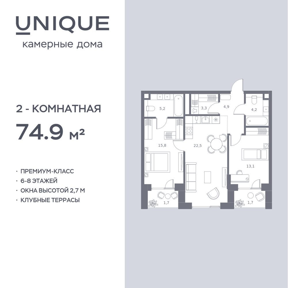 Цены указаны с условием 100% оплаты и стандартной ипотеки. Прямая продажа от застройщика! Продается 2-к. квартира номер 800 общей площадью 74.9 кв.м. на 2-м этаже 8 этажного дома, корпус UNIQUE (премиум-класс). С дизайнерской отделкой. Проект бизнес-класса SOUL от девелопера FORMA. До метро Сокол 10 мин пешком. Архитектура от британского бюро SimpsonHaugh. Благоустройство дворов — Gillespies и GAFA. Территория состоит из культурного парка и приватных дворов. Озеленение в эстетике лесного оазиса. Насыщенное благоустройство: прогулочные тропинки, релакс-зоны, пряный и сенсорный сады, развивающие детские площадки и воркауты. В центре проекта объект культурного наследия — общественное пространство Изофабрика, построенная в 30-х годах по проекту архитектора Георгия Гольца. Здесь будут располагаться мастерские для взрослых и детей, выставочные залы, коворкинги, образовательный центр, рестораны и кафе. Квартиры с панорамными окнами, мастер-спальнями, гардеробными, классическими балконами и лоджиями, видовыми террасами. Высота потолков от 2,9 до 3,5 м. В проекте 2 детских сада на 100 и 200 малышей. Клубная гостиная, фитнес-рум, детская игровая комната, дизайнерские лобби, подземный паркинг и келлеры.
