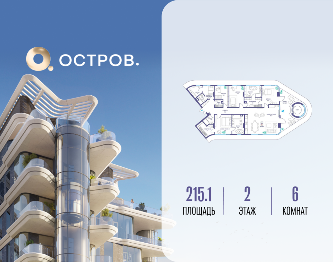 Продаётся квартира от застройщика: общая площадь 215.12 м², жилая 76.30 м², кухня 52.00 м², 2-й этаж, жилой квартал «Остров 10», (секция 1). Срок сдачи: 2 квартал 2026 года. 4 санузла (2 раздельных и 2 совмещенных). В жилой зоне 2 больших окна на одну сторону, хорошая инсоляция. Позвоните сейчас и забронируйте квартиру! ОСТРОВ от Донстрой — жилой комплекс на западе Москвы, в Мневниковской пойме. Уникальное преимущество комплекса — в том, что он обособлен от города рекой и природным парком (650 га). Благодаря природному окружению эта территория имеет лучший экологический рейтинг в столице. Кварталы ОСТРОВА объединены ландшафтным дизайном в единое пространство — с набережными и Центральным бульваром. На ОСТРОВЕ любые объекты, необходимые для полноценной жизни и отдыха, находятся на расстоянии 15-минутной прогулки. Торговый центр и супермаркеты, кафе и рестораны, фитнес, салоны красоты, школы и детские сады. А также крупнейший в Москве спортивный кластер.