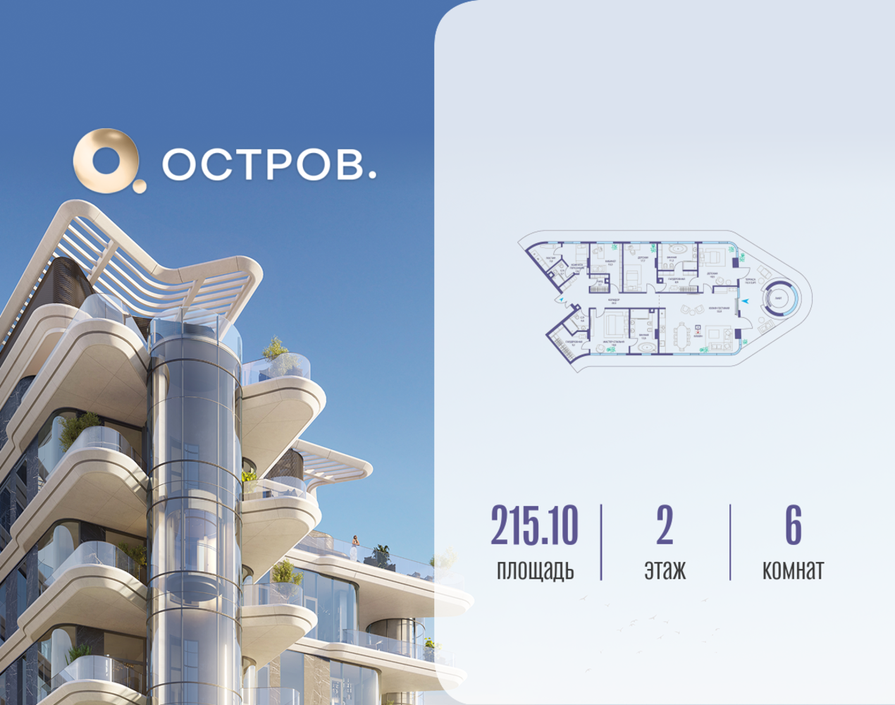 Продаётся квартира от застройщика: общая площадь 215.12 м², жилая 76.30 м², кухня 52.00 м², 2-й этаж, жилой квартал «Остров 10», (секция 1). Срок сдачи: 2 квартал 2026 года. 4 санузла (2 раздельных и 2 совмещенных). В жилой зоне 2 больших окна на одну сторону, хорошая инсоляция. Позвоните сейчас и забронируйте квартиру! ОСТРОВ от Донстрой — жилой комплекс на западе Москвы, в Мневниковской пойме. Уникальное преимущество комплекса — в том, что он обособлен от города рекой и природным парком (650 га). Благодаря природному окружению эта территория имеет лучший экологический рейтинг в столице. Кварталы ОСТРОВА объединены ландшафтным дизайном в единое пространство — с набережными и Центральным бульваром. На ОСТРОВЕ любые объекты, необходимые для полноценной жизни и отдыха, находятся на расстоянии 15-минутной прогулки. Торговый центр и супермаркеты, кафе и рестораны, фитнес, салоны красоты, школы и детские сады. А также крупнейший в Москве спортивный кластер.