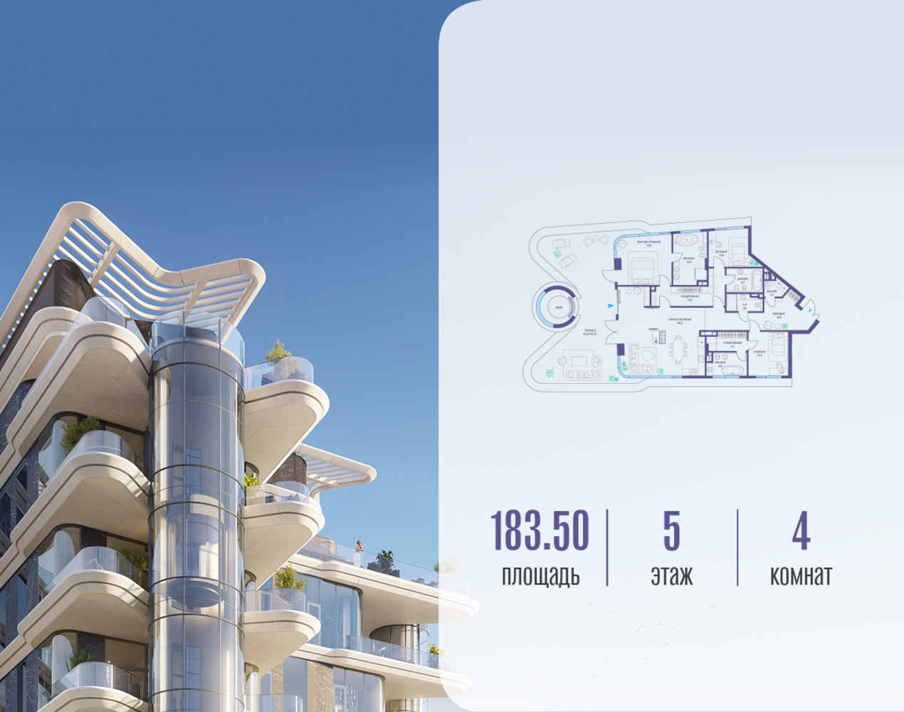 Продаётся 4-комн. квартира от застройщика: общая площадь 183.52 м², жилая 44.70 м², кухня 46.20 м², 5-й этаж, жилой квартал «Остров 10», (секция 1). Срок сдачи: 2 квартал 2026 года. 4 совмещенных санузла. В жилой зоне 2 больших окна на одну сторону, хорошая инсоляция. Позвоните сейчас и забронируйте квартиру! ОСТРОВ от Донстрой — жилой комплекс на западе Москвы, в Мневниковской пойме. Уникальное преимущество комплекса — в том, что он обособлен от города рекой и природным парком (650 га). Благодаря природному окружению эта территория имеет лучший экологический рейтинг в столице. Кварталы ОСТРОВА объединены ландшафтным дизайном в единое пространство — с набережными и Центральным бульваром. На ОСТРОВЕ любые объекты, необходимые для полноценной жизни и отдыха, находятся на расстоянии 15-минутной прогулки. Торговый центр и супермаркеты, кафе и рестораны, фитнес, салоны красоты, школы и детские сады. А также крупнейший в Москве спортивный кластер.