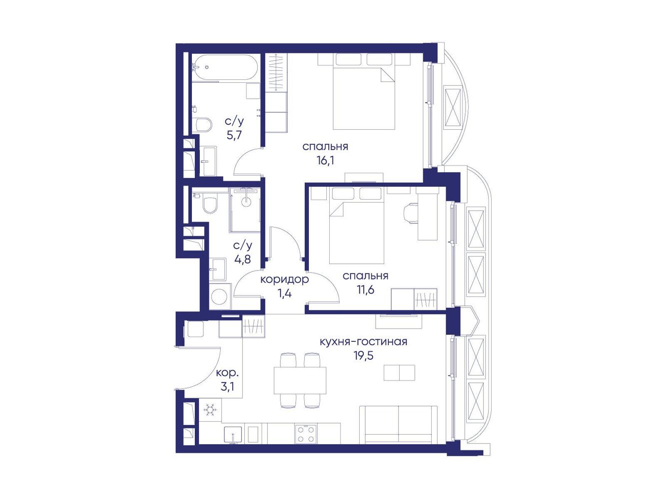 2 комнатная квартира