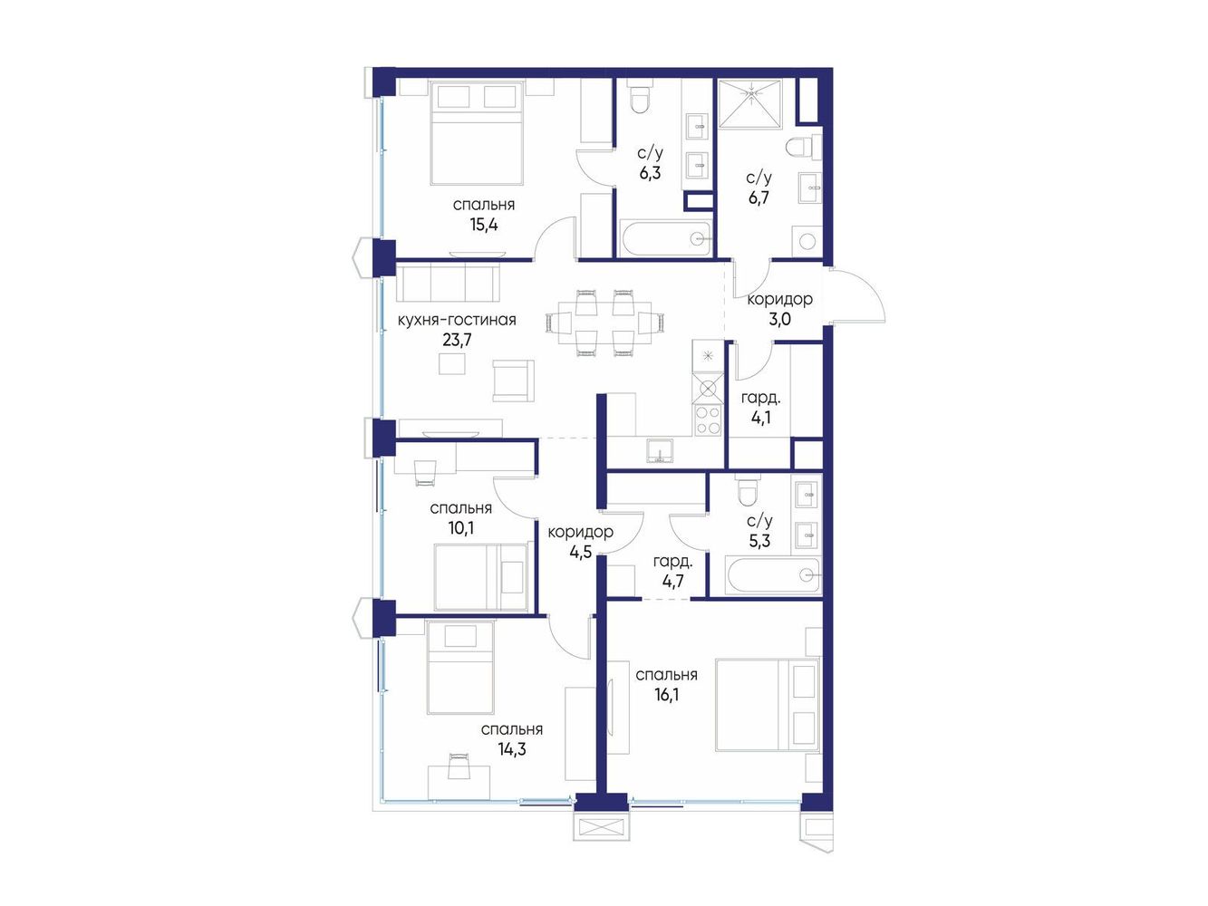 4 комнатная квартира