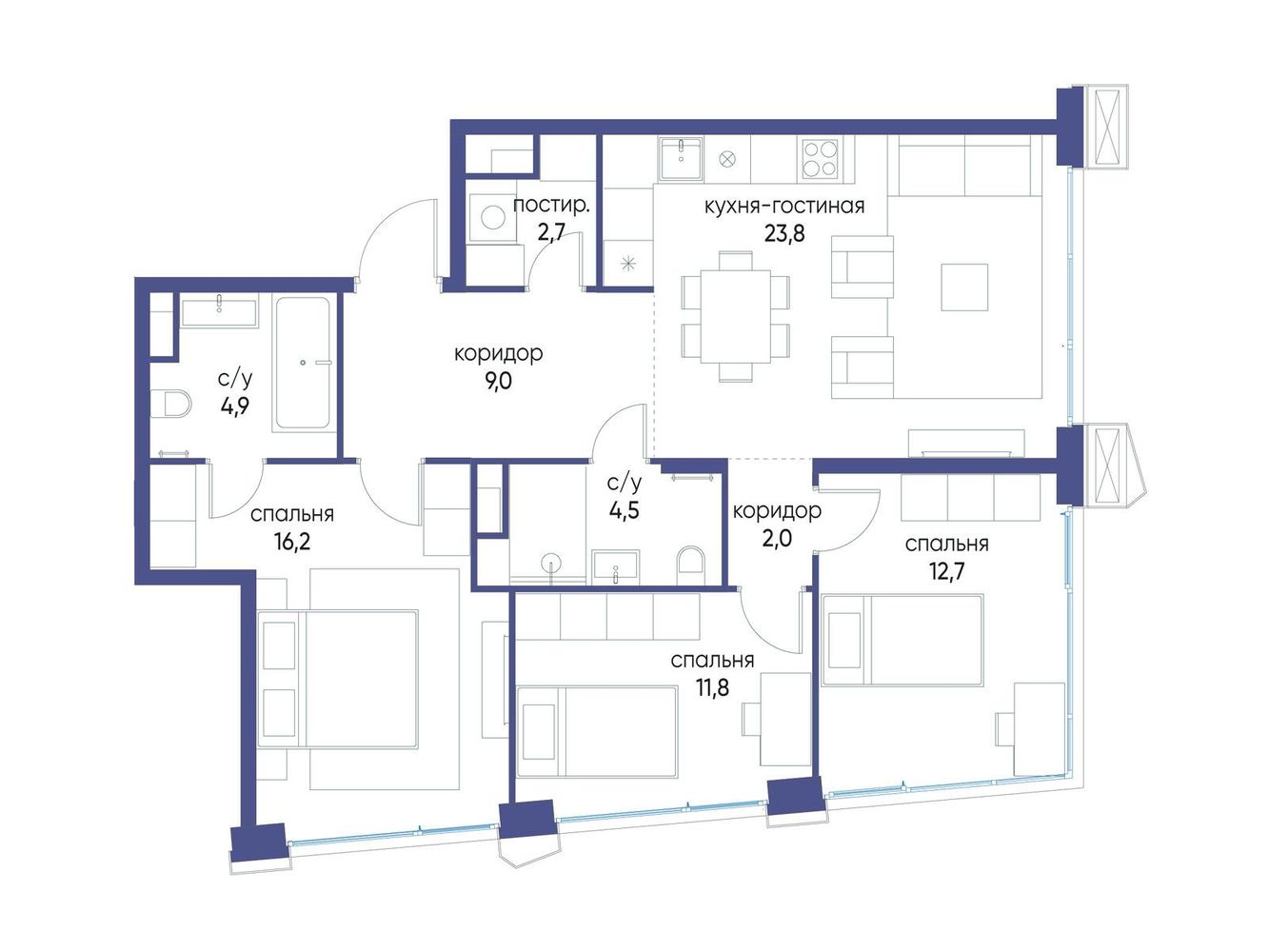 3 комнатная квартира