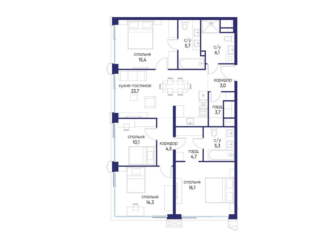 Продаётся 4-комн. квартира от застройщика: общая площадь 112.62 м², жилая 55.90 м², кухня 23.70 м², 3-й этаж, жилой квартал «Остров 14», корпус 6 (секция 1). Срок сдачи: 2 квартал 2029 года. 3 совмещенных санузла. Остров.14 ДОХОДНЫЙ ДОМ – ЧАСТЬ ПРОЕКТА «ОСТРОВ», В 10 МИНУТАХ ОТ МОСКВА-СИТИ, В 15 МИНУТАХ ЕЗДЫ ОТ САДОВОГО КОЛЬЦА. Квартиры с отделкой и мебелью, и с управлением "под ключ" Постоянный доход для инвесторов, отельный сервис для арендаторов Востребованные для аренды планировки: студии, 1- и 2-комнатные квартиры 28-64 м2 Полная комплектация квартир: отделка, мебель, бытовая техника, кондиционеры Постоянный поток арендаторов – 10 минут от Москва-Сити, 5 минут от метро «Мневники», самодостаточная инфраструктура в квартале и собственная клубная инфраструктура в доме, спортивный, рекреационный и деловой кластеры на территории ОСТРОВА