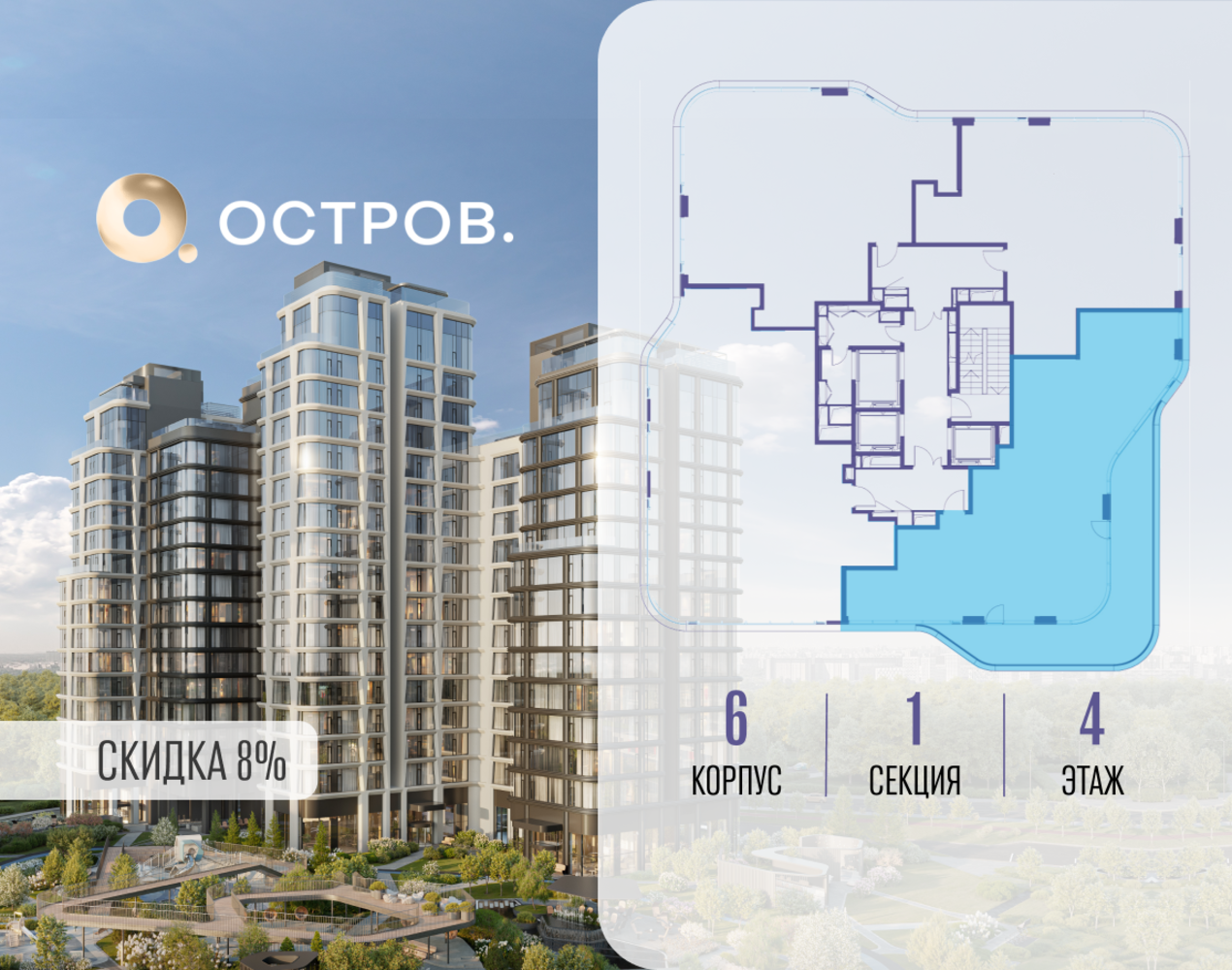 Продаётся 3-комн. квартира от застройщика: общая площадь 126.52 м², жилая 41.10 м², кухня 38.80 м², 4-й этаж, жилой квартал «Остров 12», корпус 6 (секция 1). Срок сдачи: 1 квартал 2029 года. 3 совмещенных санузла. В жилой зоне 2 больших окна на одну сторону, хорошая инсоляция. Позвоните сейчас и забронируйте квартиру! ОСТРОВ от Донстрой — жилой комплекс на западе Москвы, в Мневниковской пойме. Уникальное преимущество комплекса — в том, что он обособлен от города рекой и природным парком (650 га). Благодаря природному окружению эта территория имеет лучший экологический рейтинг в столице. Кварталы ОСТРОВА объединены ландшафтным дизайном в единое пространство — с набережными и Центральным бульваром. На ОСТРОВЕ любые объекты, необходимые для полноценной жизни и отдыха, находятся на расстоянии 15-минутной прогулки. Торговый центр и супермаркеты, кафе и рестораны, фитнес, салоны красоты, школы и детские сады. А также крупнейший в Москве спортивный кластер.