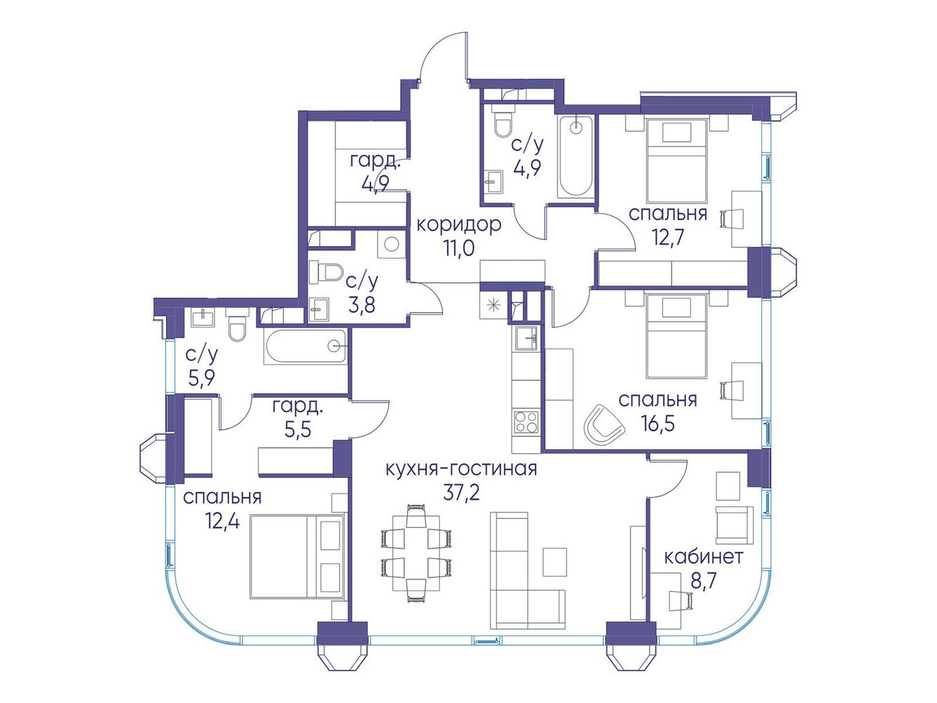 4 комнатная квартира