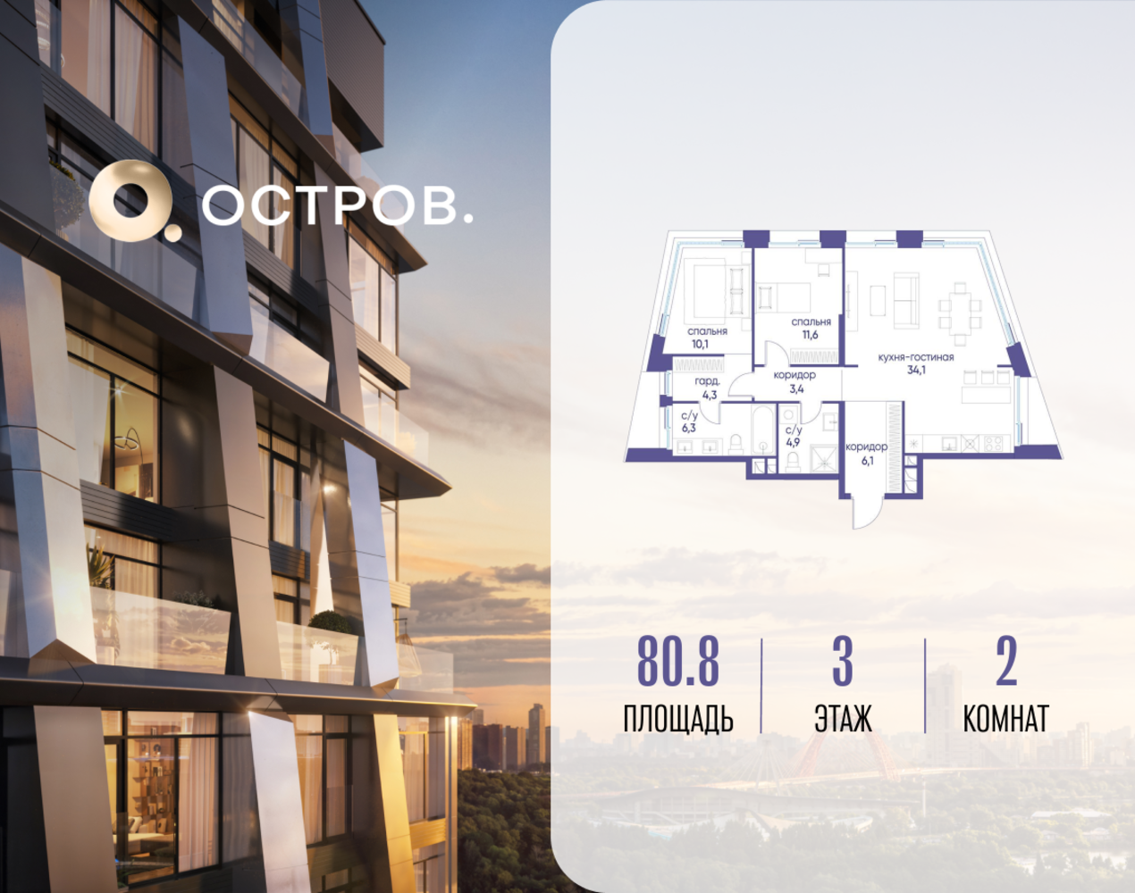 Продаётся двухкомнатная квартира от застройщика: общая площадь 80.82 м², жилая 21.70 м², кухня 34.10 м², 3, жилой квартал «Остров 12», корпус 1 (12.1 квартал) (секция 2). срок сдачи: 4-кв. 2025. , 2 санузла: 2 совмещенных. В жилой зоне 2 больших окна на одну сторону, хорошая инсоляция. Позвоните сейчас и забронируйте квартиру! Купите квартиру для курортной жизни в Москве в квартале ОСТРОВ.12.1. Это единственный на ОСТРОВЕ квартал бизнес-класса, расположенный на первой линии у реки - здесь царит атмосфера ежедневного отпуска. Дома созданы в узнаваемом футуристичном стиле и выглядят как произведения современного искусства. Для жителей предусмотрены фитнес-рум и детский клуб, гостиная и кинотеатр, переговорные и репетиторские комнаты. На крышах устроены видовые общественные пространства с зонами для йоги, коворкингами, лаунжами. Двор-парк располагает всем необходимым для отдыха и общения всех возрастов. ОСТРОВ.12.1 - часть жилого комплекса на западе Москвы, в 15 минутах езды от центра. Это настоящий заповедник посреди большого города, в окружении реки и 650 га заповедников. Здесь все необходимое находится по соседству: от детского сада до супермаркета, от фитнес-зала до серфинг-центра. На территории созданы все условия для отдыха и общения: клубная инфраструктура в домах и дворы-парки, набережные и променады, маршруты для спортсменов, детей и возрастных жителей. В нескольких минутах ходьбы расположена станция метро "Мнёвники" БКЛ. На автомобиле - 10 минут до Москва-Сити и 15 минут до Садового кольца.