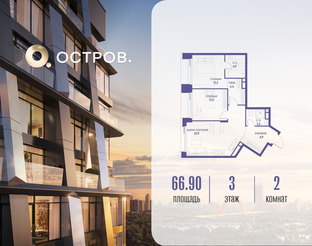 Продаётся двухкомнатная квартира от застройщика: общая площадь 66.92 м², жилая 24.20 м², кухня 22.90 м², 3, жилой квартал «Остров 12», корпус 1 (12.1 квартал) (секция 1). срок сдачи: 4-кв. 2025. , 2 санузла: 2 совмещенных. В жилой зоне 2 больших окна на одну сторону, хорошая инсоляция. Позвоните сейчас и забронируйте квартиру! Купите квартиру для курортной жизни в Москве в квартале ОСТРОВ.12.1. Это единственный на ОСТРОВЕ квартал бизнес-класса, расположенный на первой линии у реки - здесь царит атмосфера ежедневного отпуска. Дома созданы в узнаваемом футуристичном стиле и выглядят как произведения современного искусства. Для жителей предусмотрены фитнес-рум и детский клуб, гостиная и кинотеатр, переговорные и репетиторские комнаты. На крышах устроены видовые общественные пространства с зонами для йоги, коворкингами, лаунжами. Двор-парк располагает всем необходимым для отдыха и общения всех возрастов. ОСТРОВ.12.1 - часть жилого комплекса на западе Москвы, в 15 минутах езды от центра. Это настоящий заповедник посреди большого города, в окружении реки и 650 га заповедников. Здесь все необходимое находится по соседству: от детского сада до супермаркета, от фитнес-зала до серфинг-центра. На территории созданы все условия для отдыха и общения: клубная инфраструктура в домах и дворы-парки, набережные и променады, маршруты для спортсменов, детей и возрастных жителей. В нескольких минутах ходьбы расположена станция метро "Мнёвники" БКЛ. На автомобиле - 10 минут до Москва-Сити и 15 минут до Садового кольца.