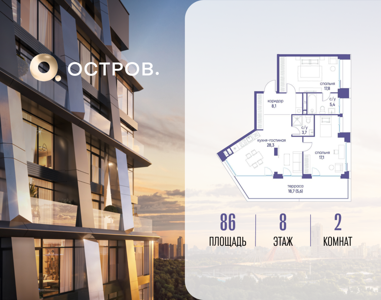 Скидка до 10% действует до 25.12.2025 г. при 100% оплате и не субсидированной ипотеке. Продаётся двухкомнатная квартира от застройщика: общая площадь 86.02 м², жилая 34.90 м², кухня 28.30 м², 8, жилой квартал «Остров 12», корпус 1 (12.1 квартал) (секция 1). срок сдачи: 4-кв. 2025. , 2 санузла: 2 совмещенных. В жилой зоне 2 больших окна на одну сторону, хорошая инсоляция. Позвоните сейчас и забронируйте квартиру! Купите квартиру для курортной жизни в Москве в квартале ОСТРОВ.12.1. Это единственный на ОСТРОВЕ квартал бизнес-класса, расположенный на первой линии у реки - здесь царит атмосфера ежедневного отпуска. Дома созданы в узнаваемом футуристичном стиле и выглядят как произведения современного искусства. Для жителей предусмотрены фитнес-рум и детский клуб, гостиная и кинотеатр, переговорные и репетиторские комнаты. На крышах устроены видовые общественные пространства с зонами для йоги, коворкингами, лаунжами. Двор-парк располагает всем необходимым для отдыха и общения всех возрастов. ОСТРОВ.12.1 - часть жилого комплекса на западе Москвы, в 15 минутах езды от центра. Это настоящий заповедник посреди большого города, в окружении реки и 650 га заповедников. Здесь все необходимое находится по соседству: от детского сада до супермаркета, от фитнес-зала до серфинг-центра. На территории созданы все условия для отдыха и общения: клубная инфраструктура в домах и дворы-парки, набережные и променады, маршруты для спортсменов, детей и возрастных жителей. В нескольких минутах ходьбы расположена станция метро "Мнёвники" БКЛ. На автомобиле - 10 минут до Москва-Сити и 15 минут до Садового кольца.