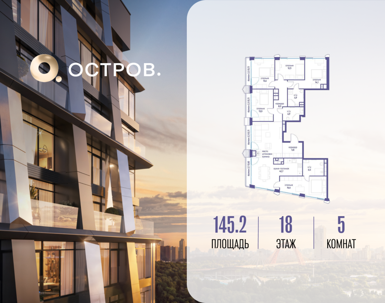 Скидка до 10% действует до 25.12.2025 г. при 100% оплате и не субсидированной ипотеке. Продаётся квартира от застройщика: общая площадь 145.22 м², жилая 69.60 м², кухня 42.70 м², 18-й этаж, жилой квартал «Остров 12», корпус 2 (секция 1). Срок сдачи: 1 квартал 2029 года. 3 совмещенных санузла. В жилой зоне 2 больших окна на одну сторону, хорошая инсоляция. Позвоните сейчас и забронируйте квартиру! ОСТРОВ от Донстрой — жилой комплекс на западе Москвы, в Мневниковской пойме. Уникальное преимущество комплекса — в том, что он обособлен от города рекой и природным парком (650 га). Благодаря природному окружению эта территория имеет лучший экологический рейтинг в столице. Кварталы ОСТРОВА объединены ландшафтным дизайном в единое пространство — с набережными и Центральным бульваром. На ОСТРОВЕ любые объекты, необходимые для полноценной жизни и отдыха, находятся на расстоянии 15-минутной прогулки. Торговый центр и супермаркеты, кафе и рестораны, фитнес, салоны красоты, школы и детские сады. А также крупнейший в Москве спортивный кластер.