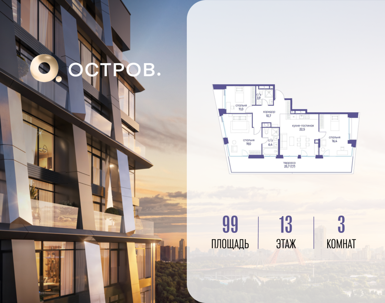 Продаётся трехкомнатная квартира от застройщика: общая площадь 99.02 м², жилая 46.40 м², кухня 22.50 м², 13, жилой квартал «Остров 12», корпус 1 (12.1 квартал) (секция 2). срок сдачи: 4-кв. 2025. , 2 санузла: 2 совмещенных. В жилой зоне 2 больших окна на одну сторону, хорошая инсоляция. Позвоните сейчас и забронируйте квартиру! Купите квартиру для курортной жизни в Москве в квартале ОСТРОВ.12.1. Это единственный на ОСТРОВЕ квартал бизнес-класса, расположенный на первой линии у реки - здесь царит атмосфера ежедневного отпуска. Дома созданы в узнаваемом футуристичном стиле и выглядят как произведения современного искусства. Для жителей предусмотрены фитнес-рум и детский клуб, гостиная и кинотеатр, переговорные и репетиторские комнаты. На крышах устроены видовые общественные пространства с зонами для йоги, коворкингами, лаунжами. Двор-парк располагает всем необходимым для отдыха и общения всех возрастов. ОСТРОВ.12.1 - часть жилого комплекса на западе Москвы, в 15 минутах езды от центра. Это настоящий заповедник посреди большого города, в окружении реки и 650 га заповедников. Здесь все необходимое находится по соседству: от детского сада до супермаркета, от фитнес-зала до серфинг-центра. На территории созданы все условия для отдыха и общения: клубная инфраструктура в домах и дворы-парки, набережные и променады, маршруты для спортсменов, детей и возрастных жителей. В нескольких минутах ходьбы расположена станция метро "Мнёвники" БКЛ. На автомобиле - 10 минут до Москва-Сити и 15 минут до Садового кольца.