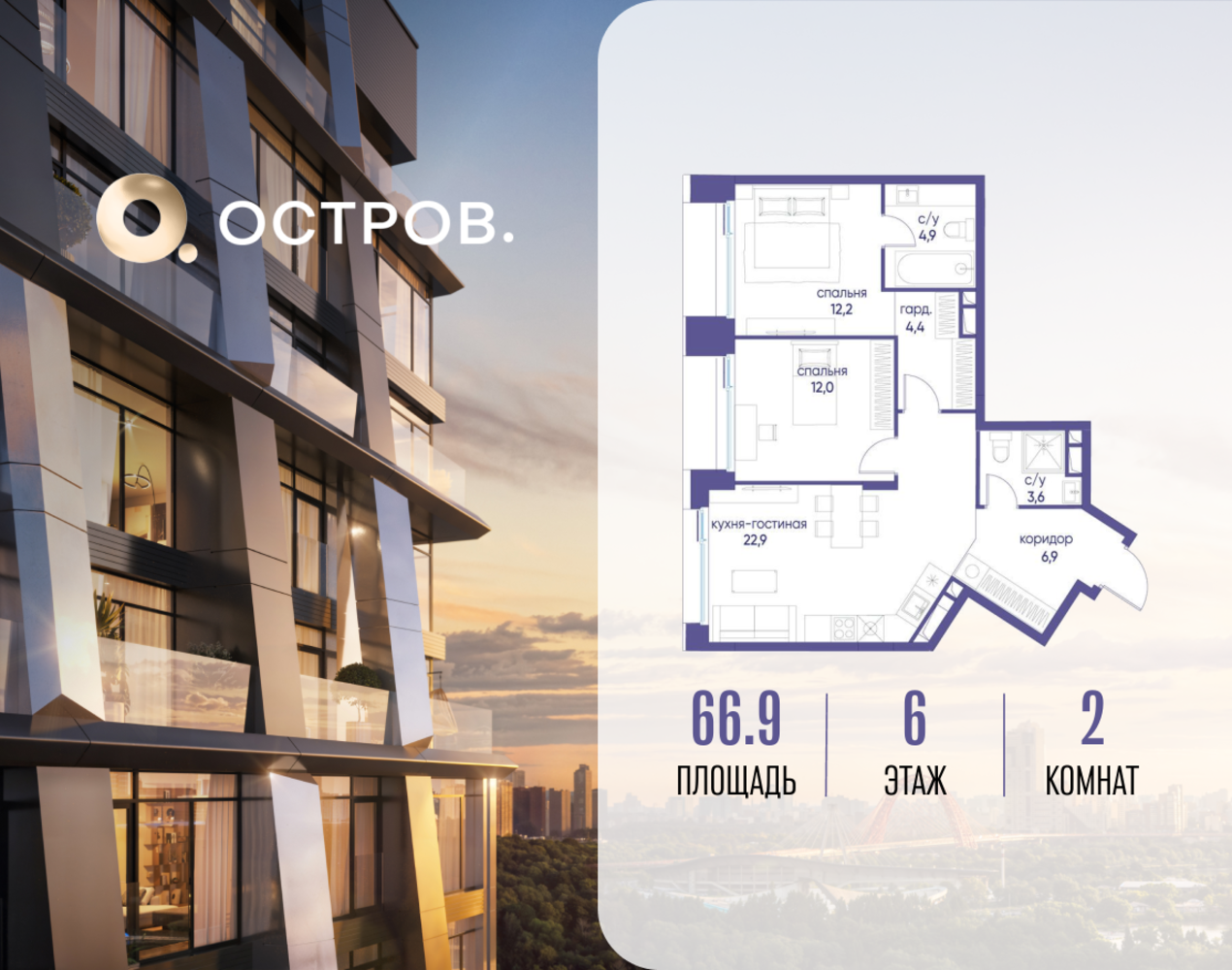 Продаётся двухкомнатная квартира от застройщика: общая площадь 66.92 м², жилая 24.20 м², кухня 22.90 м², 6, жилой квартал «Остров 12», корпус 1 (12.1 квартал) (секция 1). срок сдачи: 4-кв. 2025. , 2 санузла: 2 совмещенных. В жилой зоне 2 больших окна на одну сторону, хорошая инсоляция. Позвоните сейчас и забронируйте квартиру! Купите квартиру для курортной жизни в Москве в квартале ОСТРОВ.12.1. Это единственный на ОСТРОВЕ квартал бизнес-класса, расположенный на первой линии у реки - здесь царит атмосфера ежедневного отпуска. Дома созданы в узнаваемом футуристичном стиле и выглядят как произведения современного искусства. Для жителей предусмотрены фитнес-рум и детский клуб, гостиная и кинотеатр, переговорные и репетиторские комнаты. На крышах устроены видовые общественные пространства с зонами для йоги, коворкингами, лаунжами. Двор-парк располагает всем необходимым для отдыха и общения всех возрастов. ОСТРОВ.12.1 - часть жилого комплекса на западе Москвы, в 15 минутах езды от центра. Это настоящий заповедник посреди большого города, в окружении реки и 650 га заповедников. Здесь все необходимое находится по соседству: от детского сада до супермаркета, от фитнес-зала до серфинг-центра. На территории созданы все условия для отдыха и общения: клубная инфраструктура в домах и дворы-парки, набережные и променады, маршруты для спортсменов, детей и возрастных жителей. В нескольких минутах ходьбы расположена станция метро "Мнёвники" БКЛ. На автомобиле - 10 минут до Москва-Сити и 15 минут до Садового кольца.