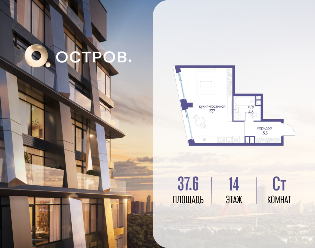 Продаётся студия от застройщика: общая площадь 37.62 м², жилая 22.70 м², кухня 5.00 м², 14, жилой квартал «Остров 12», корпус 1 (12.1 квартал) (секция 2). срок сдачи: 4-кв. 2025. , 1 совмещенный санузел. В жилой зоне 2 больших окна на одну сторону, хорошая инсоляция. Позвоните сейчас и забронируйте квартиру! Купите квартиру для курортной жизни в Москве в квартале ОСТРОВ.12.1. Это единственный на ОСТРОВЕ квартал бизнес-класса, расположенный на первой линии у реки - здесь царит атмосфера ежедневного отпуска. Дома созданы в узнаваемом футуристичном стиле и выглядят как произведения современного искусства. Для жителей предусмотрены фитнес-рум и детский клуб, гостиная и кинотеатр, переговорные и репетиторские комнаты. На крышах устроены видовые общественные пространства с зонами для йоги, коворкингами, лаунжами. Двор-парк располагает всем необходимым для отдыха и общения всех возрастов. ОСТРОВ.12.1 - часть жилого комплекса на западе Москвы, в 15 минутах езды от центра. Это настоящий заповедник посреди большого города, в окружении реки и 650 га заповедников. Здесь все необходимое находится по соседству: от детского сада до супермаркета, от фитнес-зала до серфинг-центра. На территории созданы все условия для отдыха и общения: клубная инфраструктура в домах и дворы-парки, набережные и променады, маршруты для спортсменов, детей и возрастных жителей. В нескольких минутах ходьбы расположена станция метро "Мнёвники" БКЛ. На автомобиле - 10 минут до Москва-Сити и 15 минут до Садового кольца.