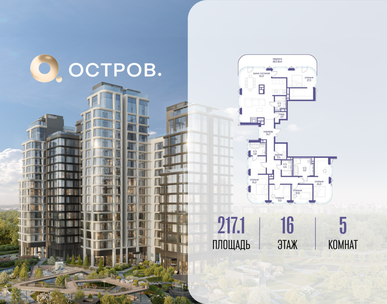 Продаётся квартира от застройщика: общая площадь 217.12 м², жилая 97.50 м², кухня 54.00 м², 16-й этаж, жилой квартал «Остров 12», корпус 2 (секция 1). Срок сдачи: 1 квартал 2029 года. 4 совмещенных санузла. В жилой зоне 2 больших окна на одну сторону, хорошая инсоляция. Позвоните сейчас и забронируйте квартиру! ОСТРОВ от Донстрой — жилой комплекс на западе Москвы, в Мневниковской пойме. Уникальное преимущество комплекса — в том, что он обособлен от города рекой и природным парком (650 га). Благодаря природному окружению эта территория имеет лучший экологический рейтинг в столице. Кварталы ОСТРОВА объединены ландшафтным дизайном в единое пространство — с набережными и Центральным бульваром. На ОСТРОВЕ любые объекты, необходимые для полноценной жизни и отдыха, находятся на расстоянии 15-минутной прогулки. Торговый центр и супермаркеты, кафе и рестораны, фитнес, салоны красоты, школы и детские сады. А также крупнейший в Москве спортивный кластер.