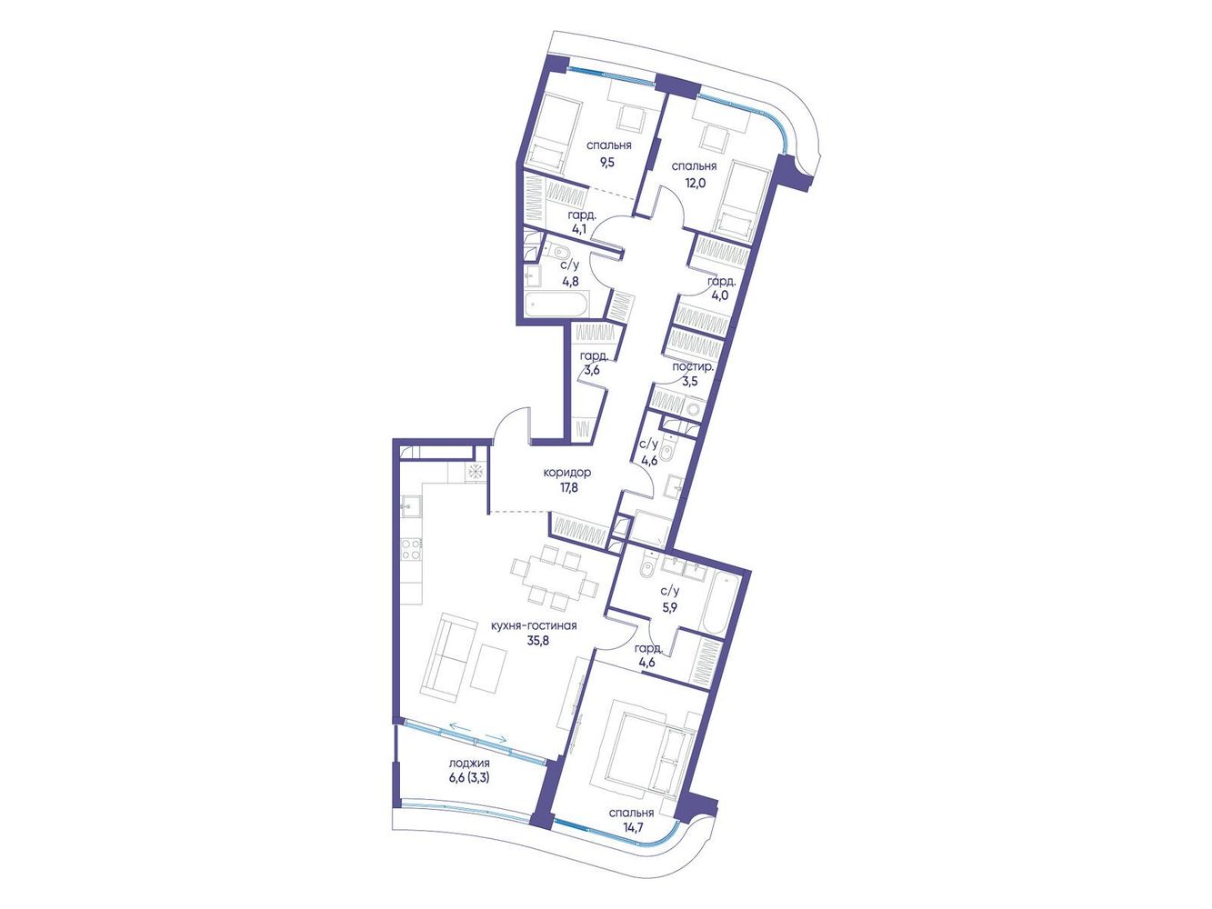 Продаётся трехкомнатная квартира от застройщика: общая площадь 128.22 м², жилая 36.20 м², кухня 35.80 м², 17, жилой квартал «Остров 7», корпус 2 (7 квартал) (секция 2). срок сдачи: 4-кв. 2025. , 3 санузла: 3 совмещенных. В жилой зоне 2 больших окна на одну сторону, хорошая инсоляция. Позвоните сейчас и забронируйте квартиру! Купите квартиру в доме у прибрежного парка, в квартале ОСТРОВ.7. Это семь корпусов премиум- и бизнес-класса в одном из лучших мест ОСТРОВА - между бульваром и парком, поблизости от реки. Стильные корпуса имеют узнаваемый вид благодаря бионической пластике фасадов, приподнятых над землей. Для жителей предусмотрены детский клуб, фитнес-рум, коворкинг, переговорные, лаунжи. На крышах устроены видовые общественные пространства с зонами для отдыха и спорта. Двор расположен на двух уровнях: нижний ландшафтный парк и верхняя городская терраса. ОСТРОВ.7 - часть жилого комплекса на западе Москвы, в 15 минутах езды от центра. Это настоящий заповедник посреди большого города, в окружении реки и 650 га заповедников. Здесь все необходимое находится по соседству: от детского сада до супермаркета, от фитнес-зала до серфинг-центра. На территории созданы все условия для отдыха и общения: клубная инфраструктура в домах и дворы-парки, набережные и променады, маршруты для спортсменов, детей и возрастных жителей. В нескольких минутах ходьбы расположена станция метро "Терехово" БКЛ. На автомобиле - 10 минут до Москва-Сити и 15 минут до Садового кольца.